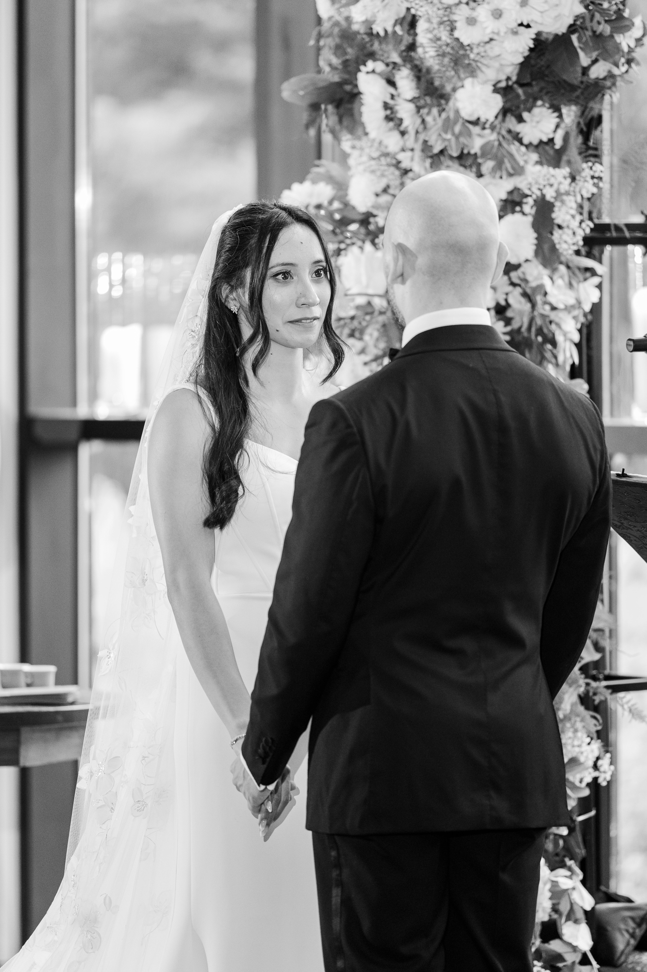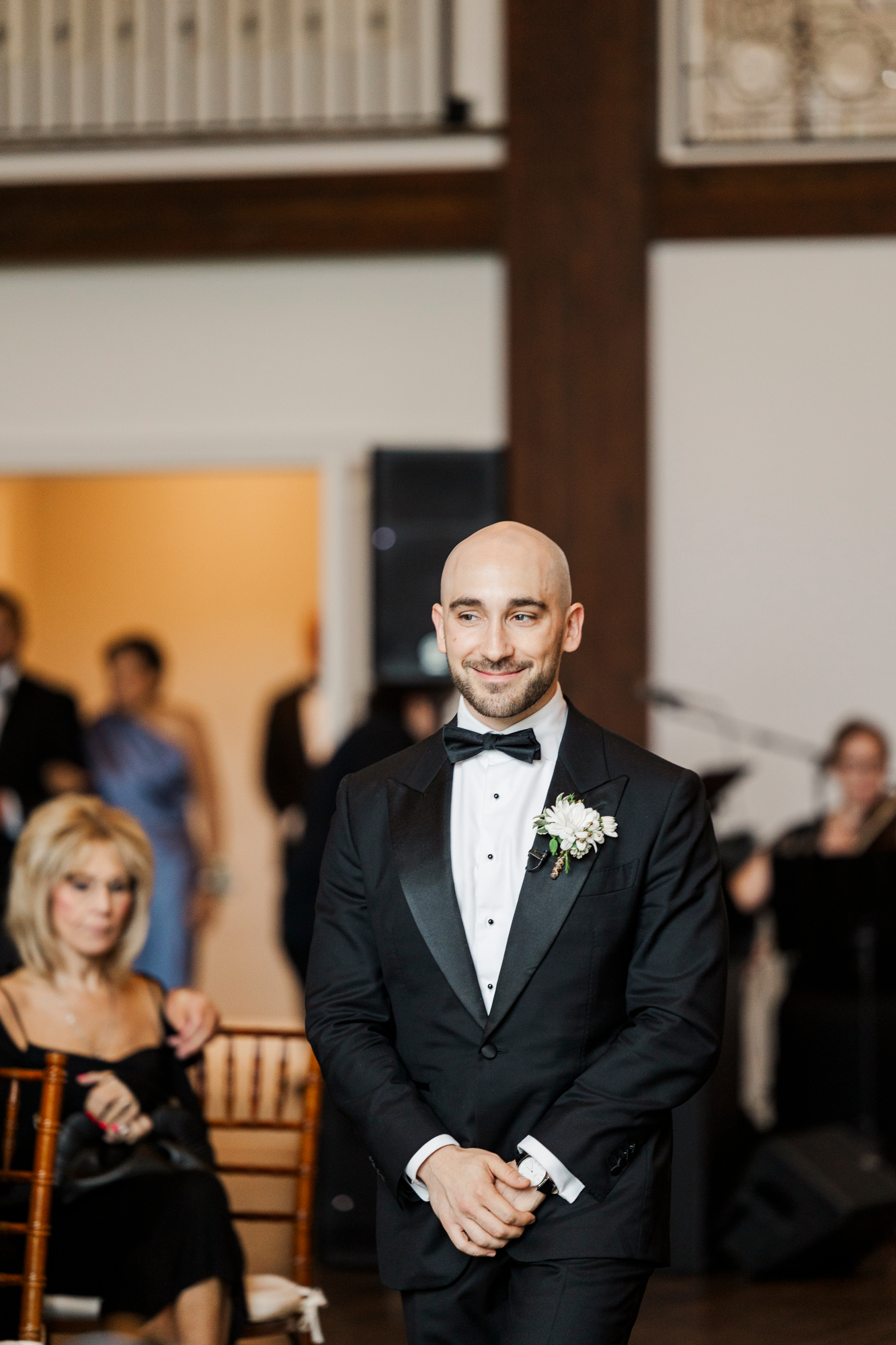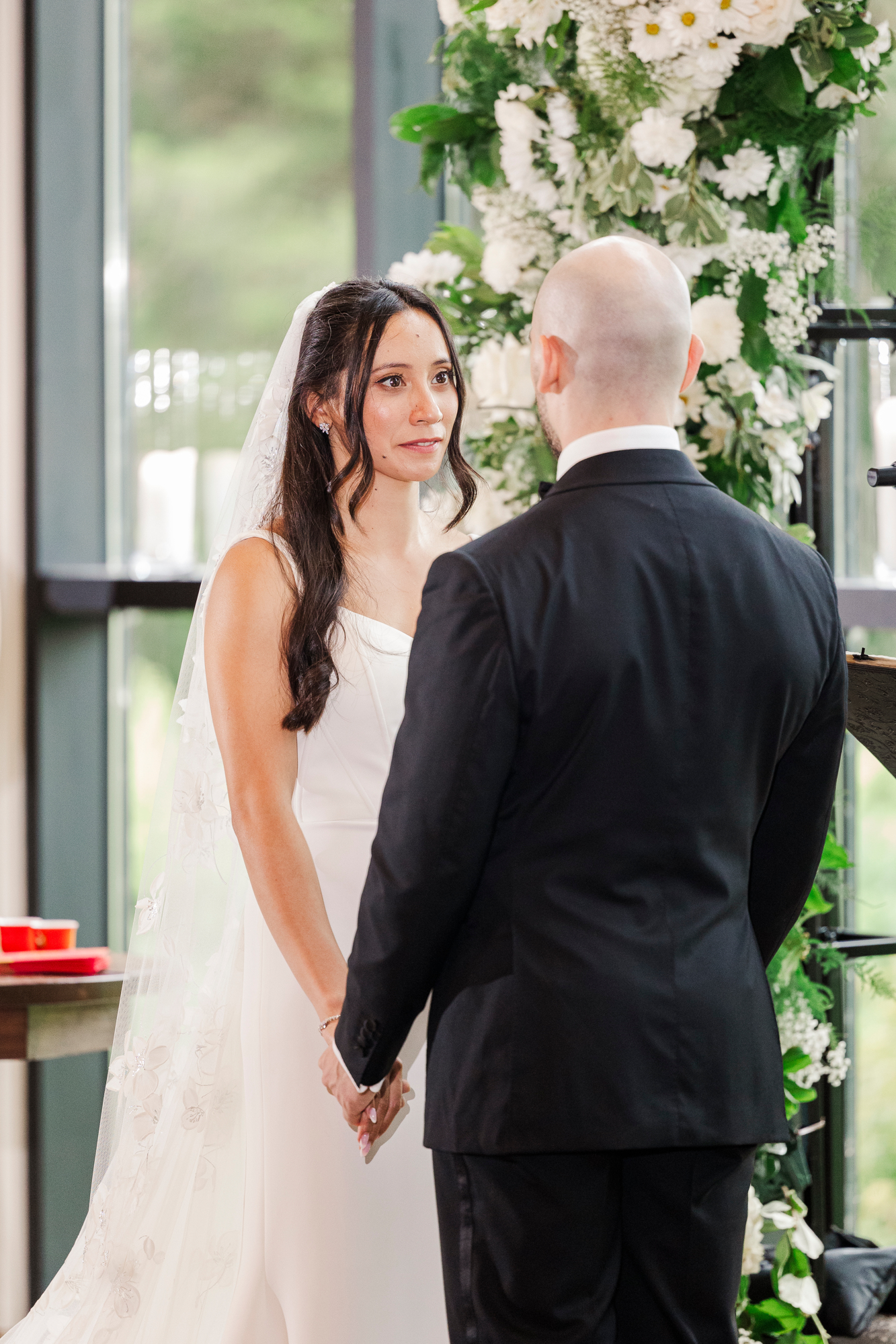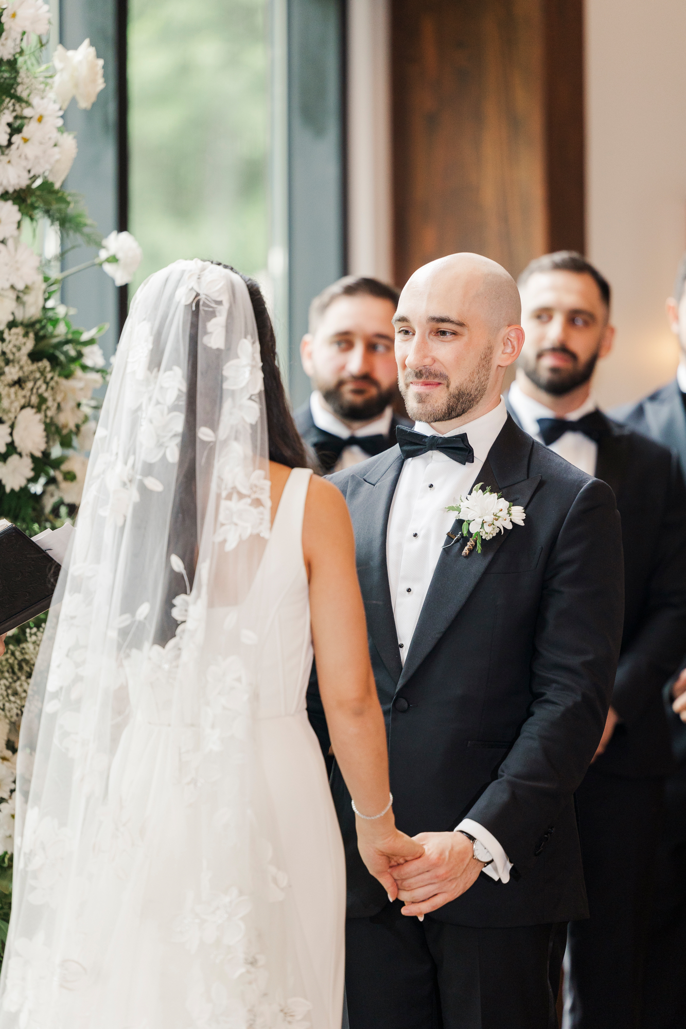 The tea ceremony for this Crossed Keys Estate wedding was beautifully lit within the space. Laura and Rob then went outside for portraits before changing back into their ceremony attire. Shortly after, they recited private vows in the farmhouse suite before walking down the aisle. The ceremony was sweet and sentimental, and perfectly reflected the couple’s love story.