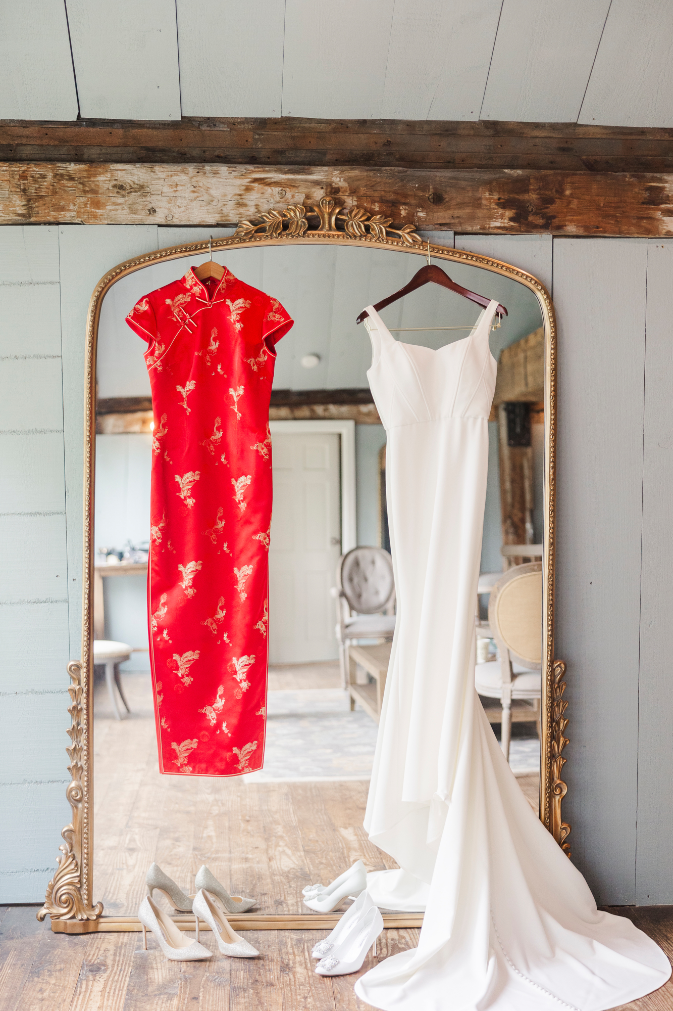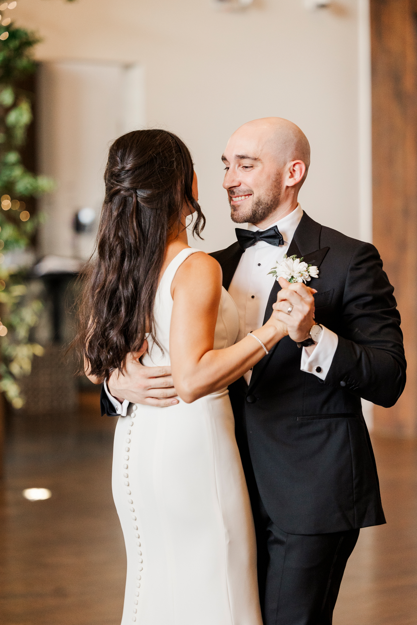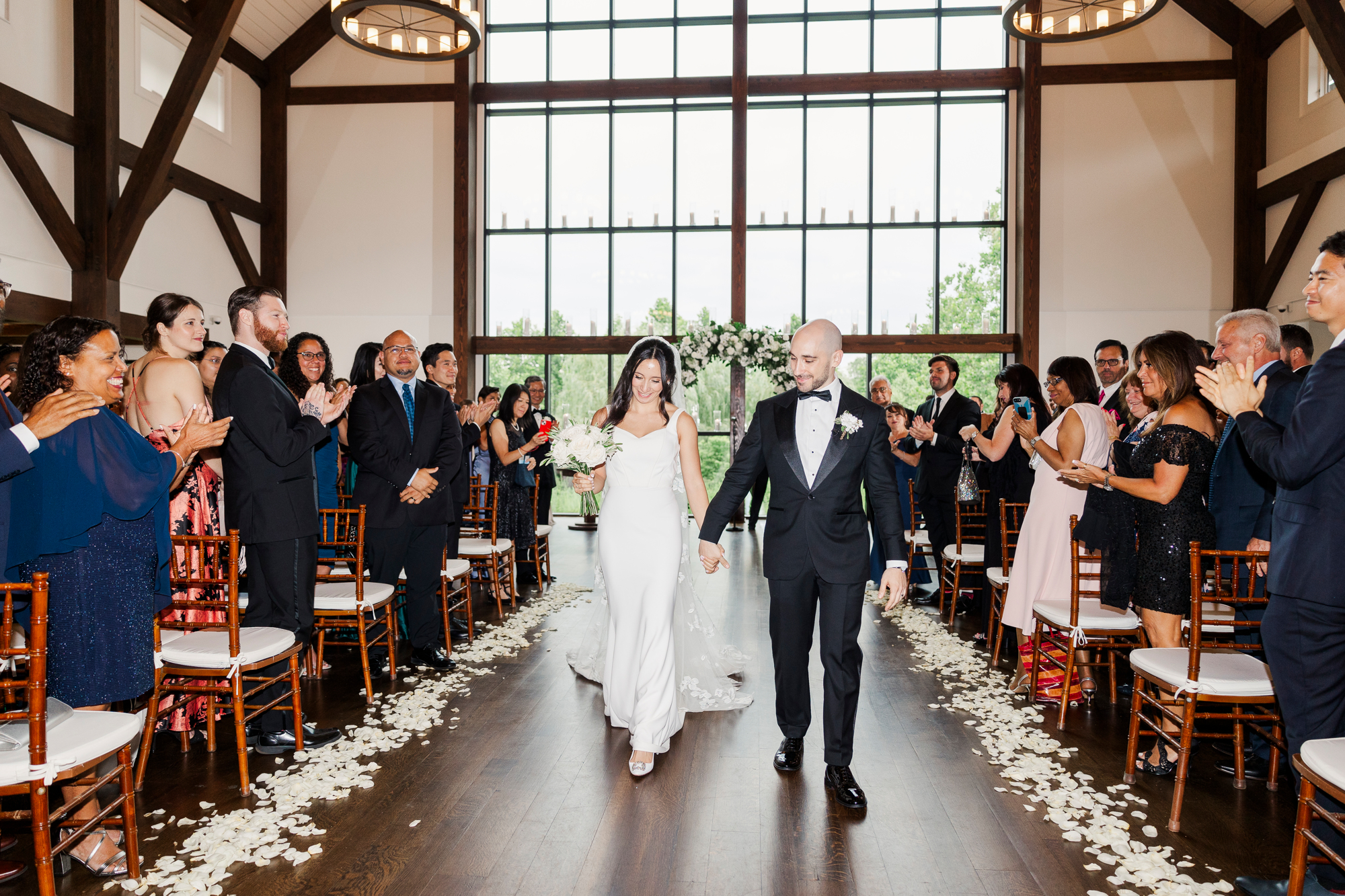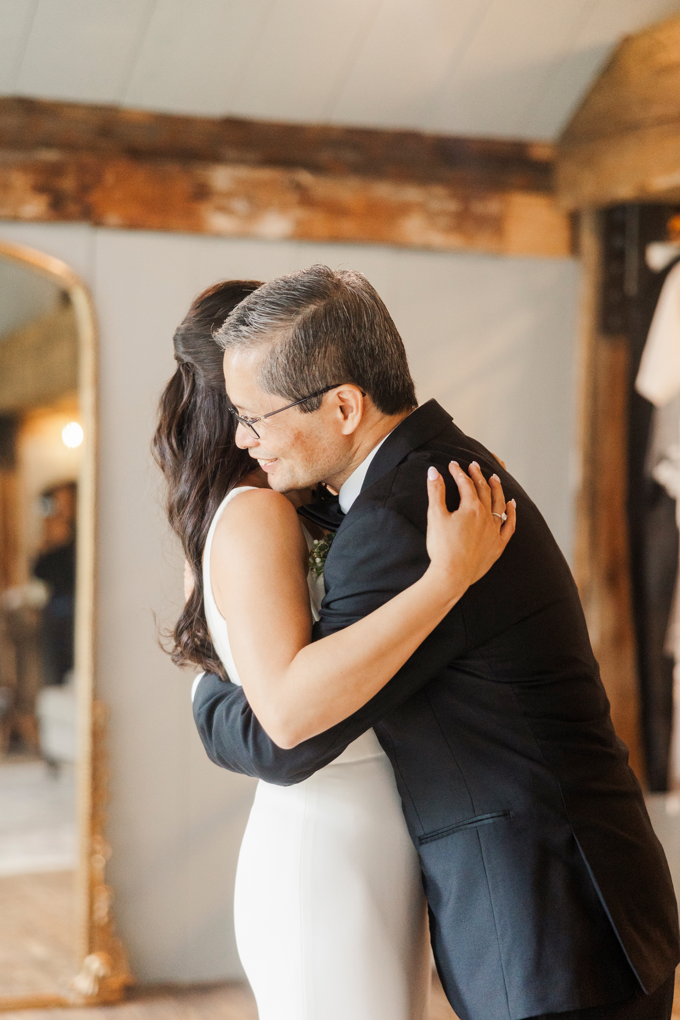 The tea ceremony for this Crossed Keys Estate wedding was beautifully lit within the space. Laura and Rob then went outside for portraits before changing back into their ceremony attire. Shortly after, they recited private vows in the farmhouse suite before walking down the aisle. The ceremony was sweet and sentimental, and perfectly reflected the couple’s love story.