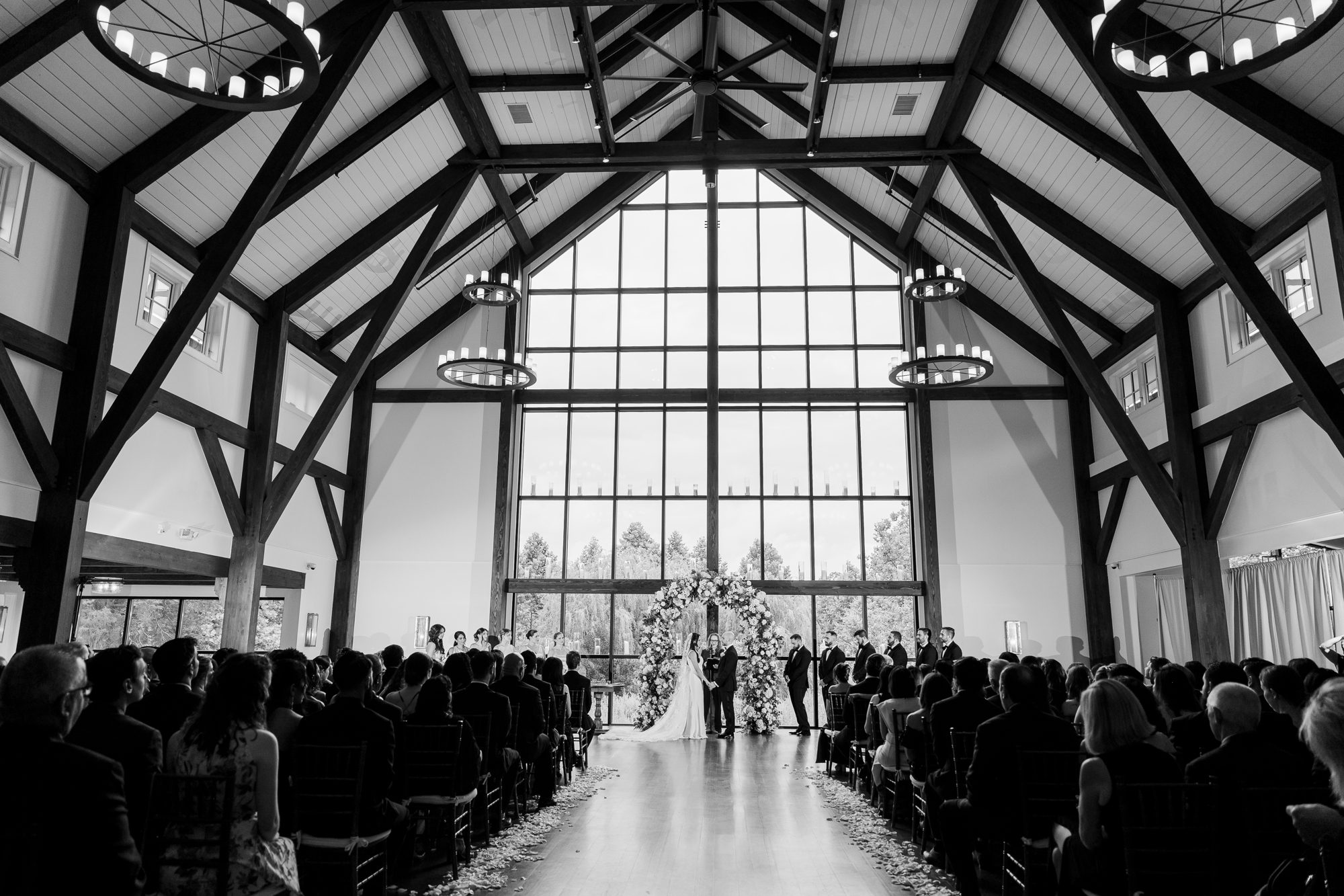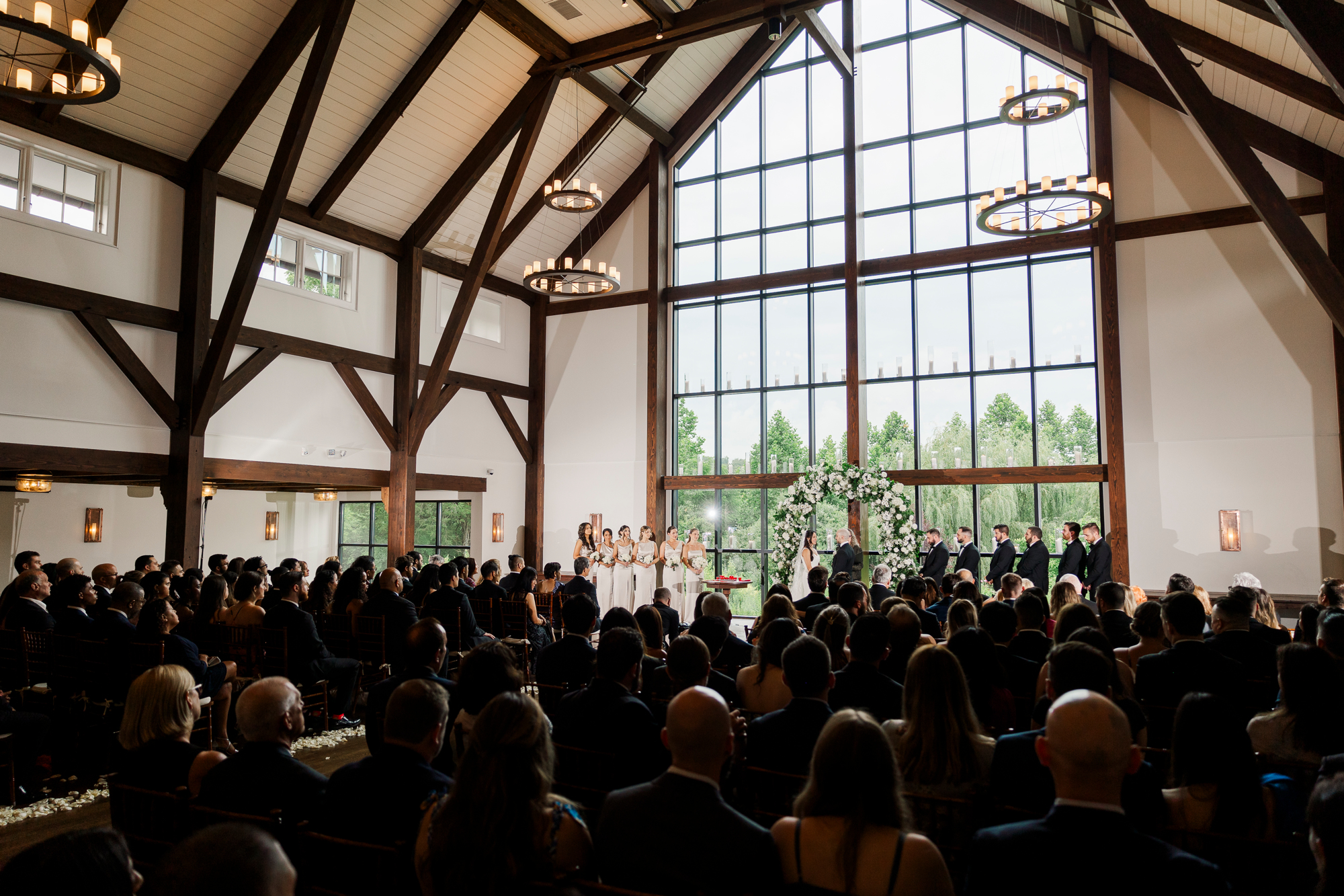 Let’s talk about the venue, first and foremost. Nestled in the woods of Sussex County, this wedding venue is one of the most picturesque places to get married. With the ability to accommodate up to 275 guests, this event space is perfect for couples who want a big celebration. With both indoor and outdoor ceremony sites, you’re absolutely set no matter the weather.