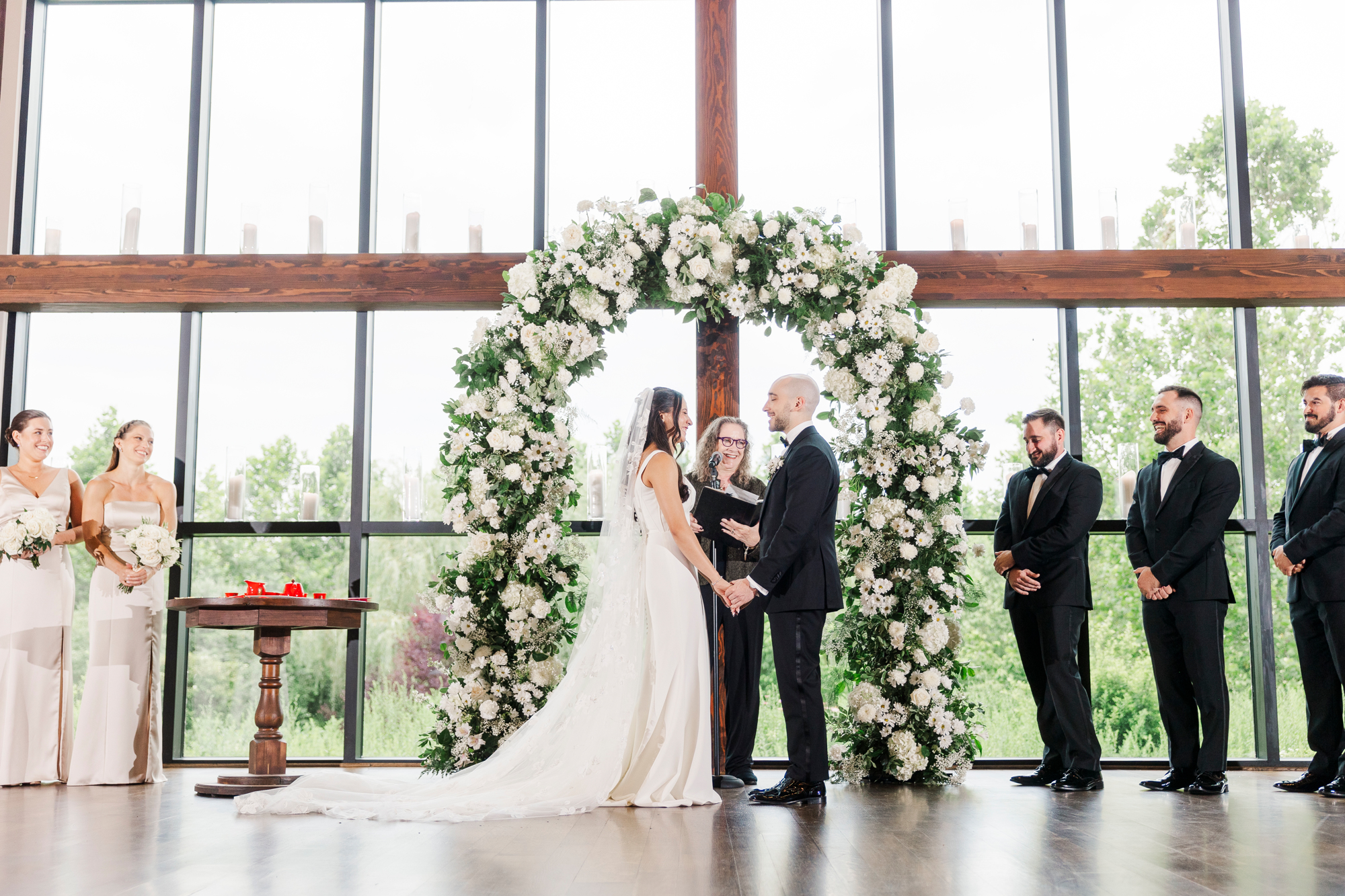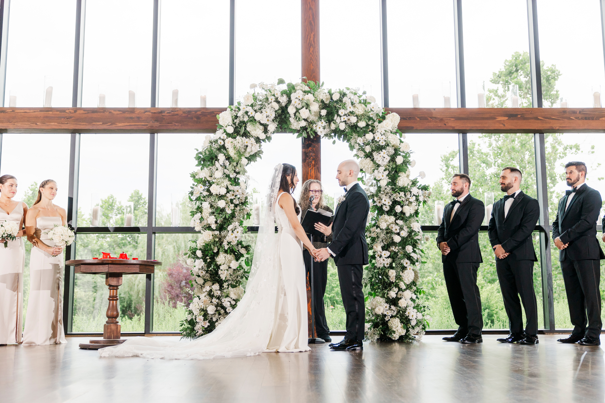 The main event space has nearly floor-to-ceiling glass windows, allowing for tons of natural light. Treat your guests to a stunning view as you say I do. It’s perfect for indoor ceremonies at your Crossed Keys Estate wedding like Laura and Rob’s. The Conservatory also features a ton of natural light, which makes for a great cocktail hour spot.