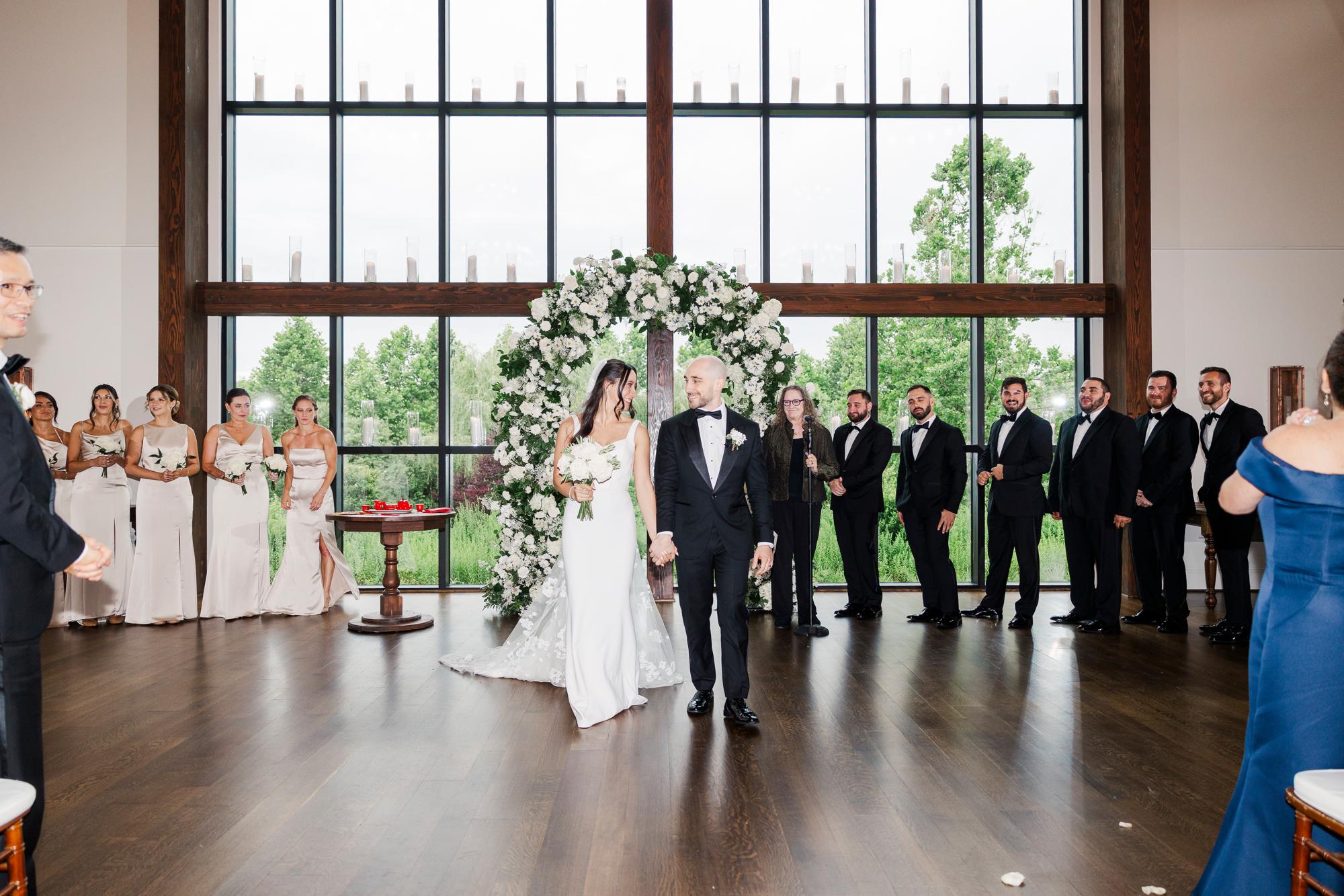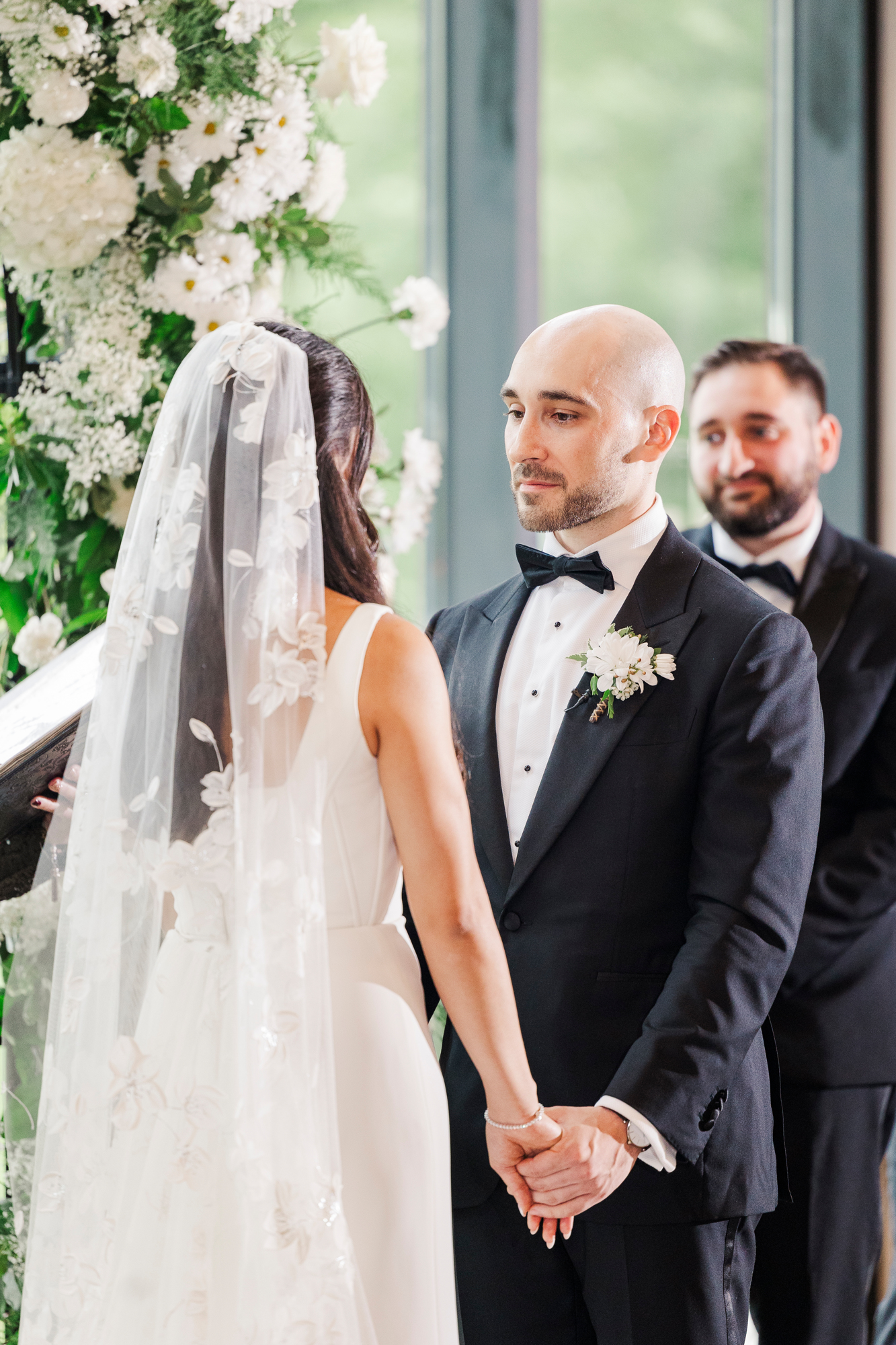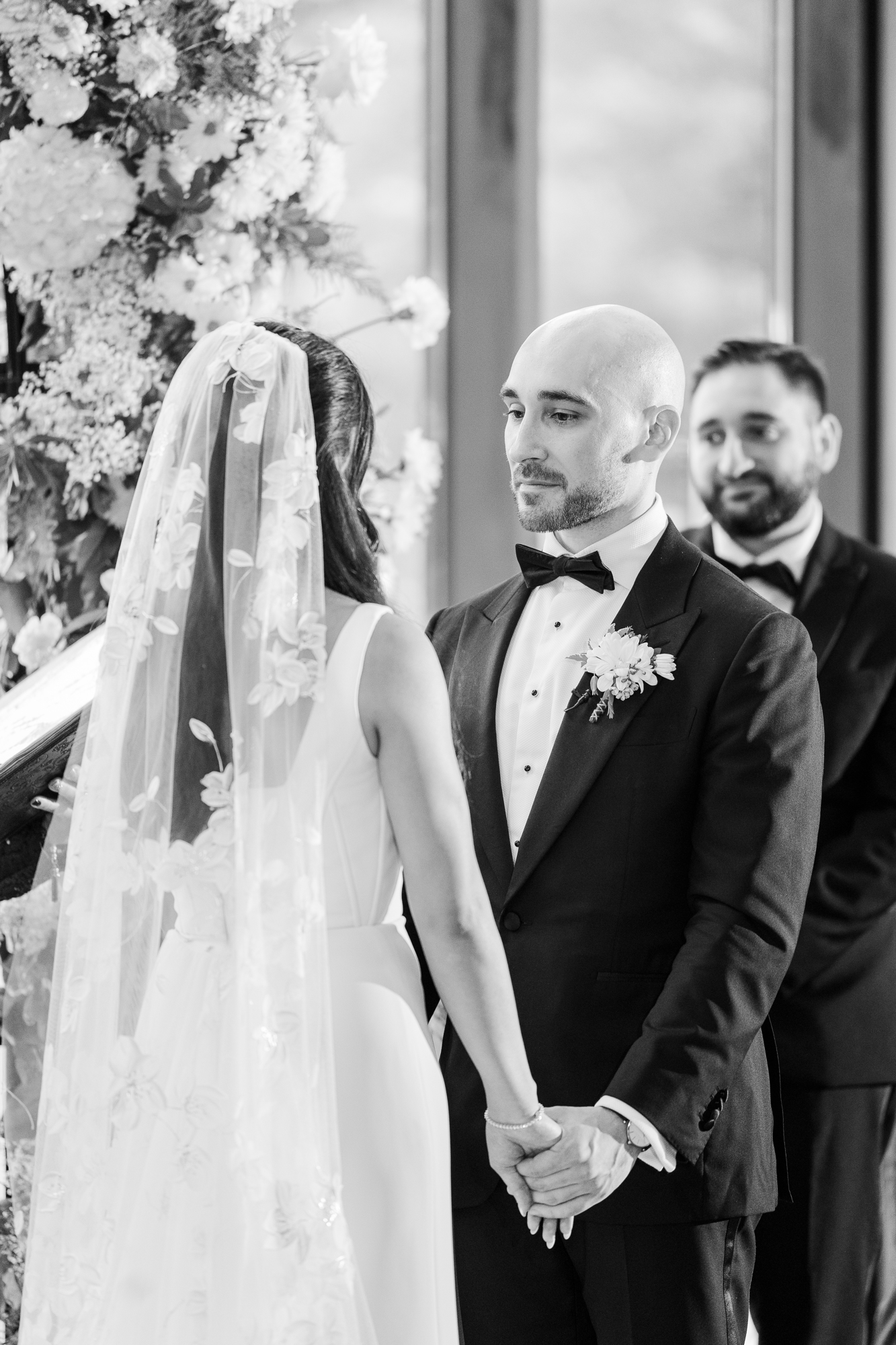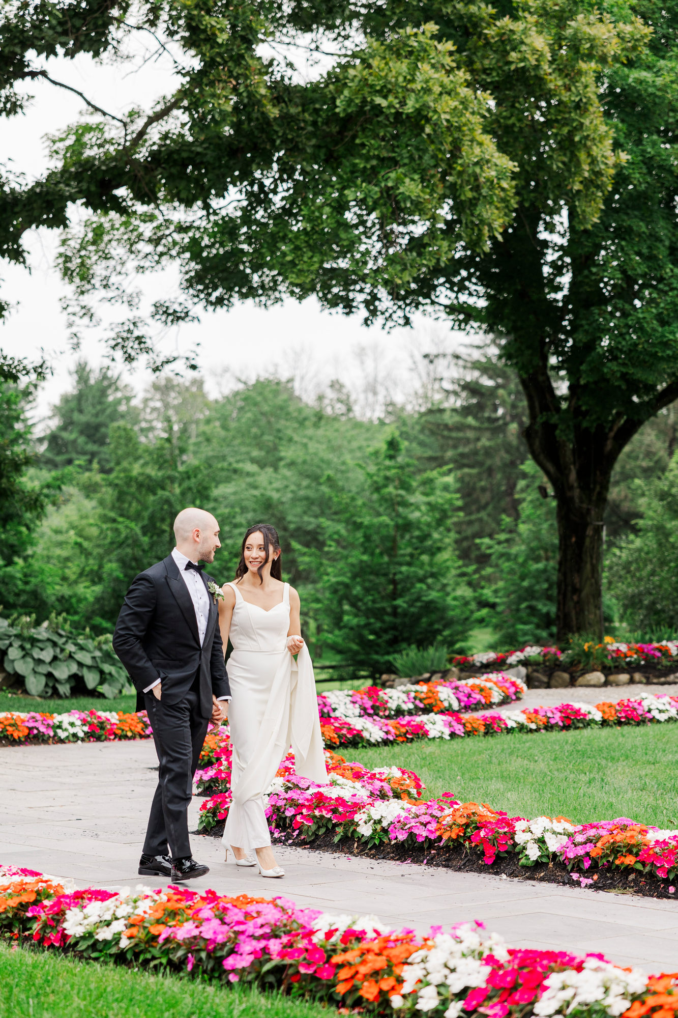 The English garden is a gorgeous spot for ceremonies. For Laura and Rob’s Crossed Keys Estate wedding, they had their ceremony indoors. With a simple and elegant look, the space is perfect for timeless wedding photography. Our Hudson Valley wedding photo and video team loves to capture non-traditional images in this unique space.