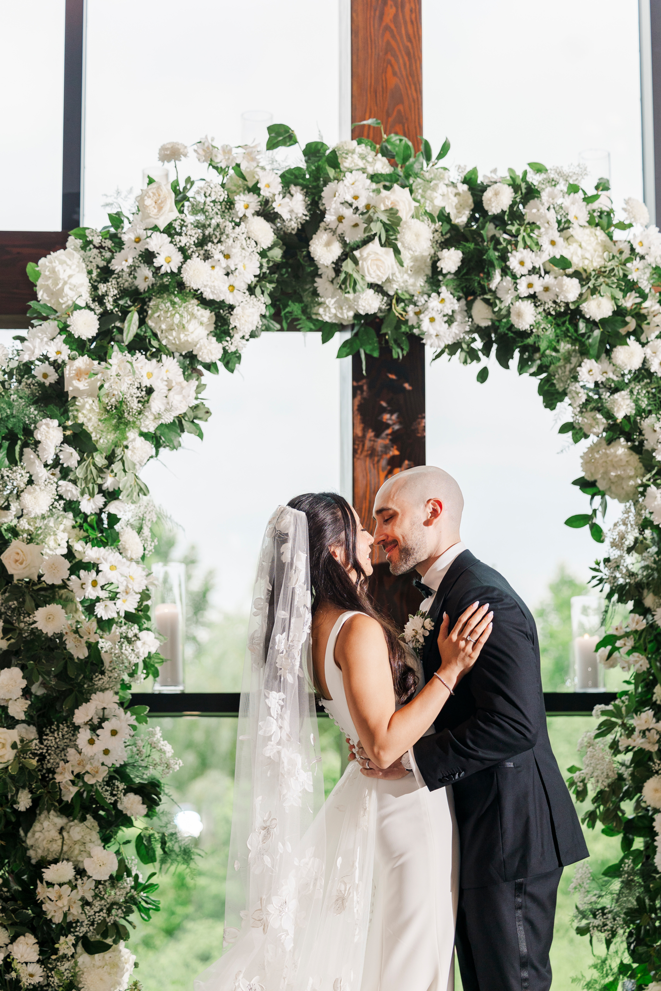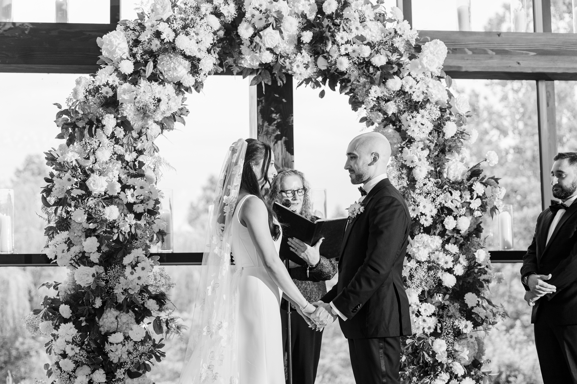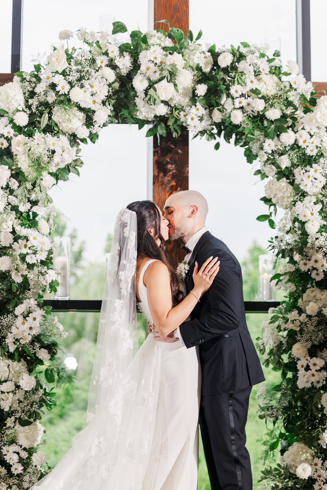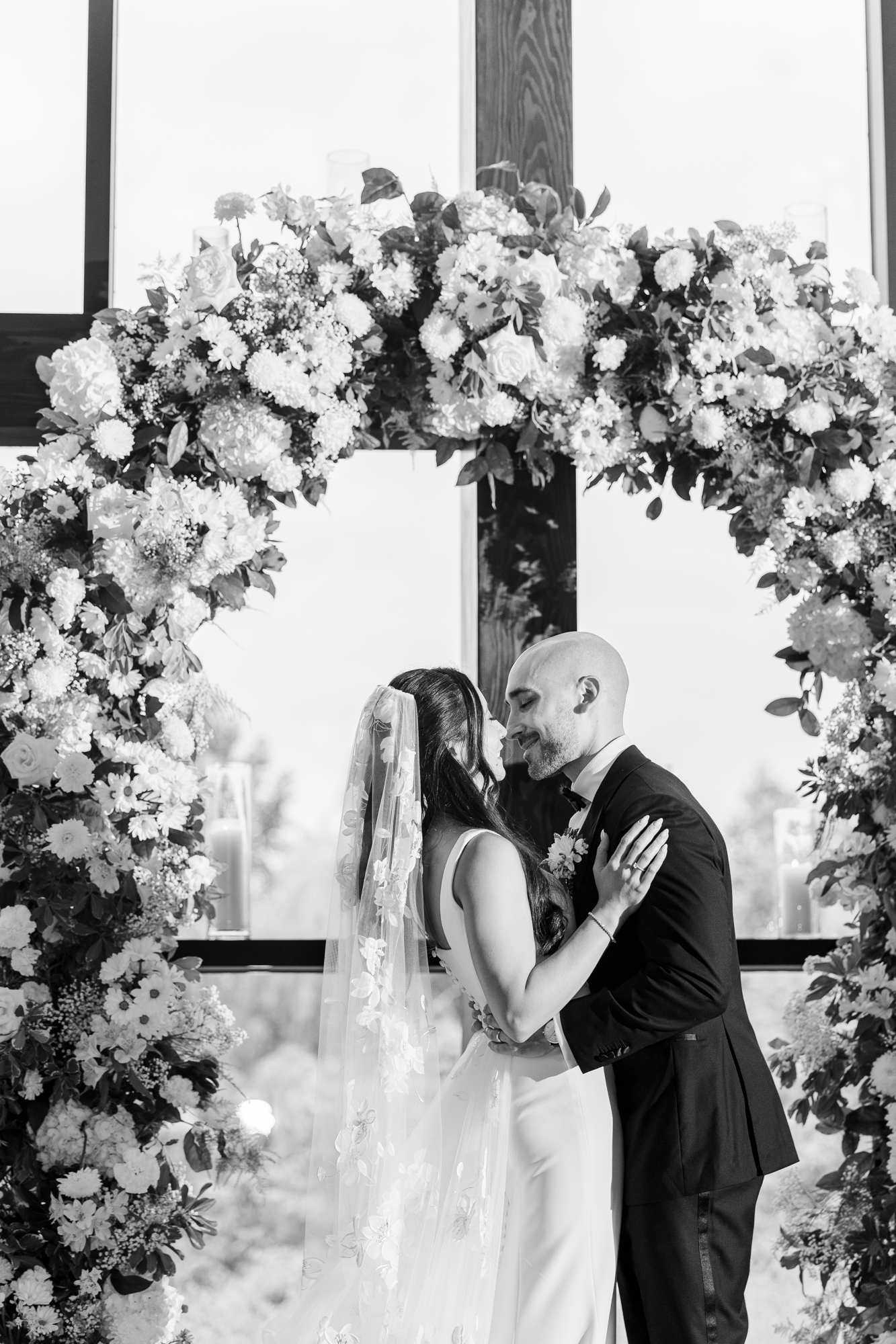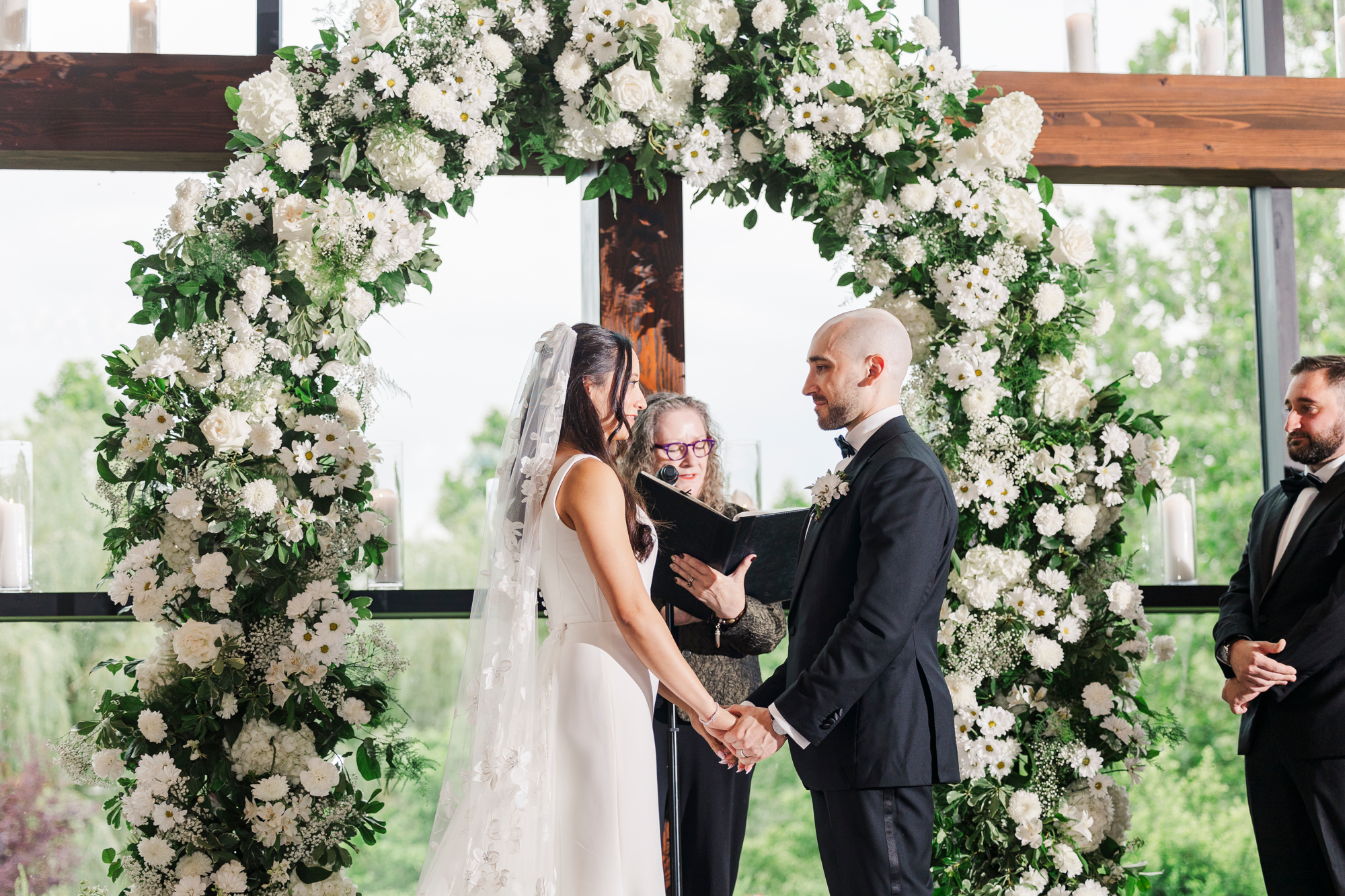 The English garden is a gorgeous spot for ceremonies. For Laura and Rob’s Crossed Keys Estate wedding, they had their ceremony indoors. With a simple and elegant look, the space is perfect for timeless wedding photography. Our Hudson Valley wedding photo and video team loves to capture non-traditional images in this unique space.