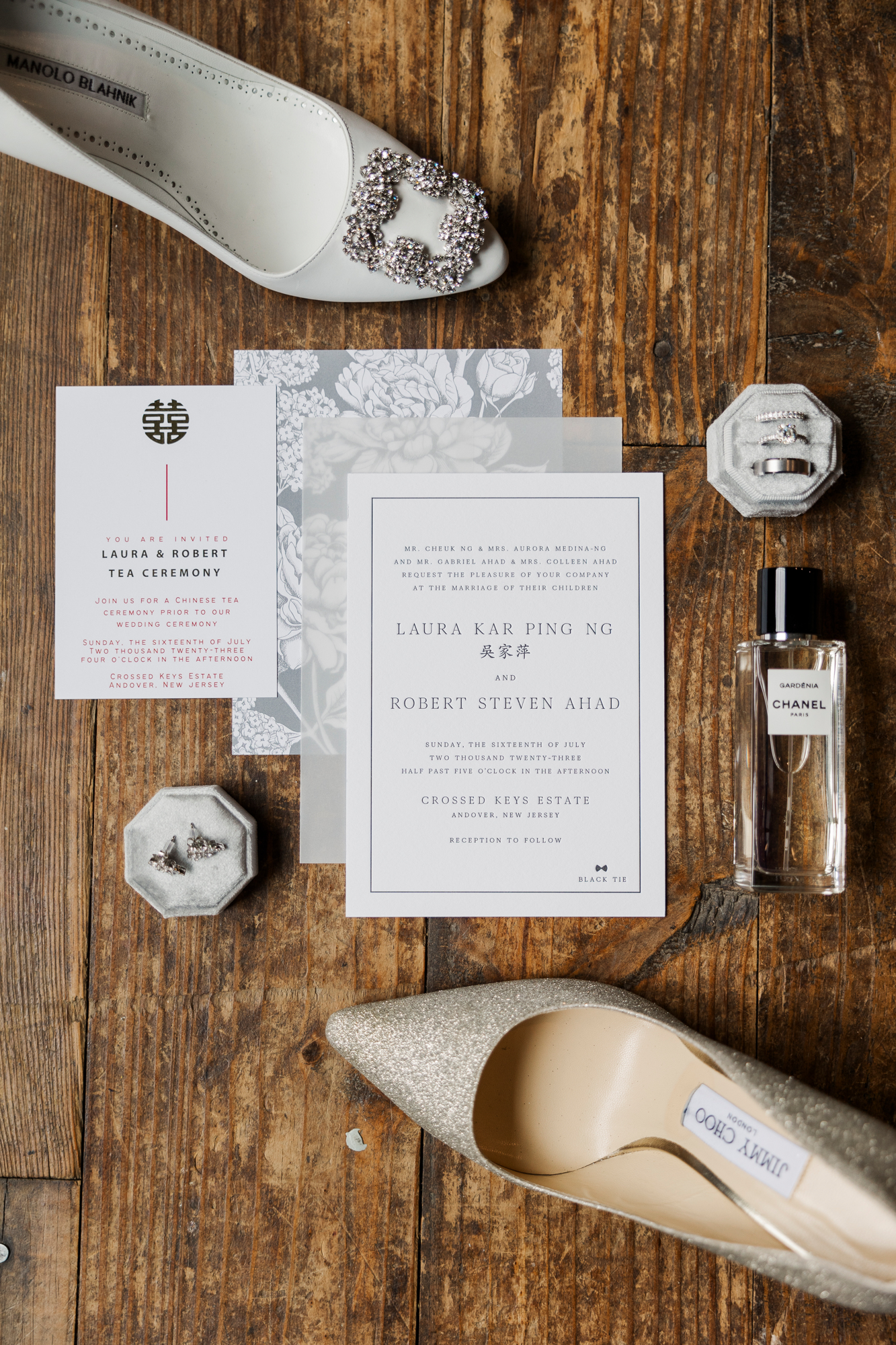 Laura and Rob’s Crossed Keys Estate wedding in Andover is a gallery that perfectly encapsulates the versatility of this NJ wedding venue. As Hudson Valley wedding photographers, we love to come out to this part of Northern New Jersey for stunning celebrations. With overcast weather and summer heat, the ceremony photos take place indoors with portraits outside.