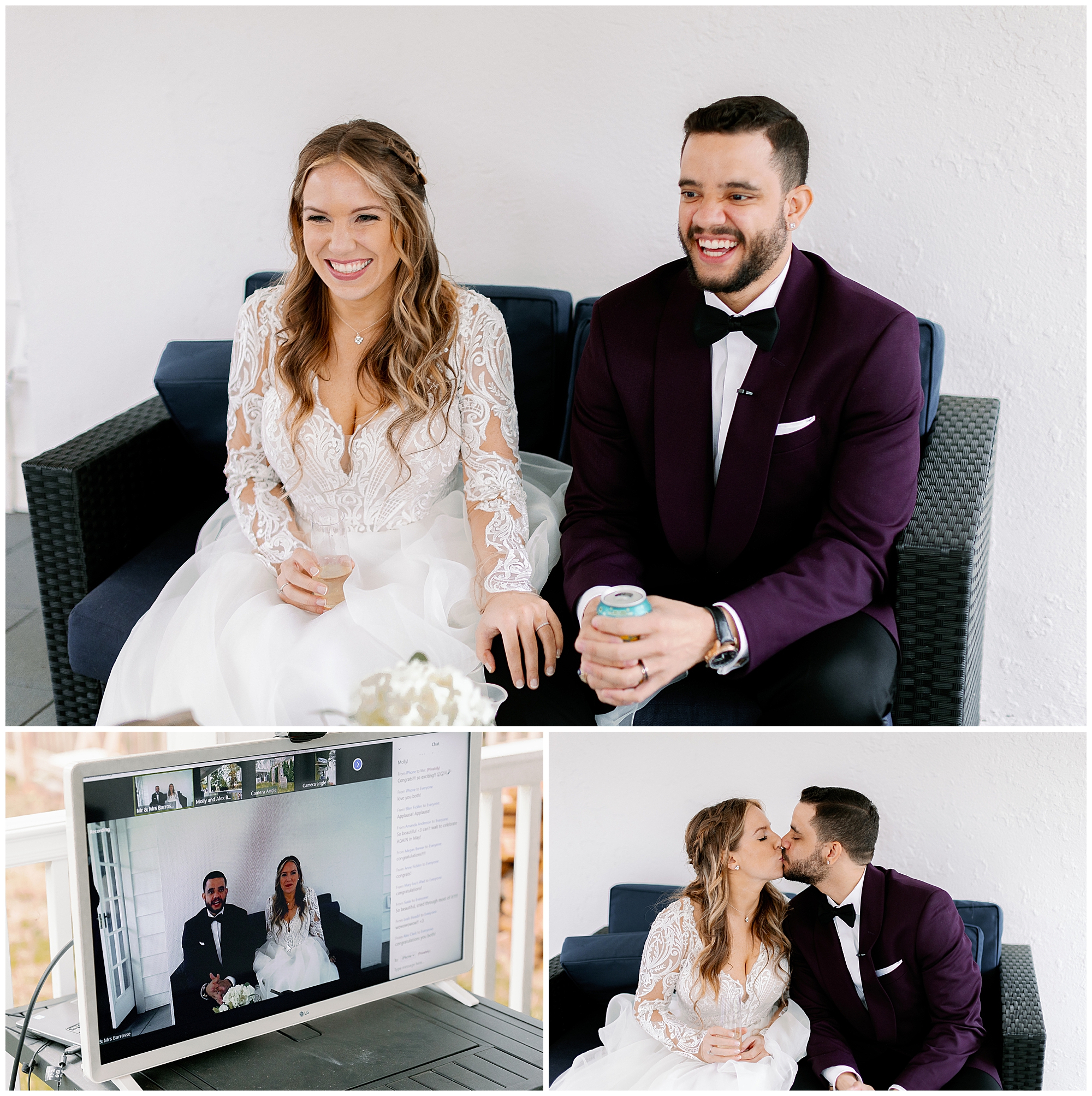 The bride’s mother officiated the ceremony, creating a deeply personal and emotional moment. We filmed a full single-angle ceremony video so the couple could share their day with friends who couldn’t attend. The ability to include loved ones virtually is one of the best parts of small weddings. Molly and Alex exchanged intimate vows surrounded by family, while guests watched the moment unfold in person and on a live Zoom stream for those tuning in from afar.
