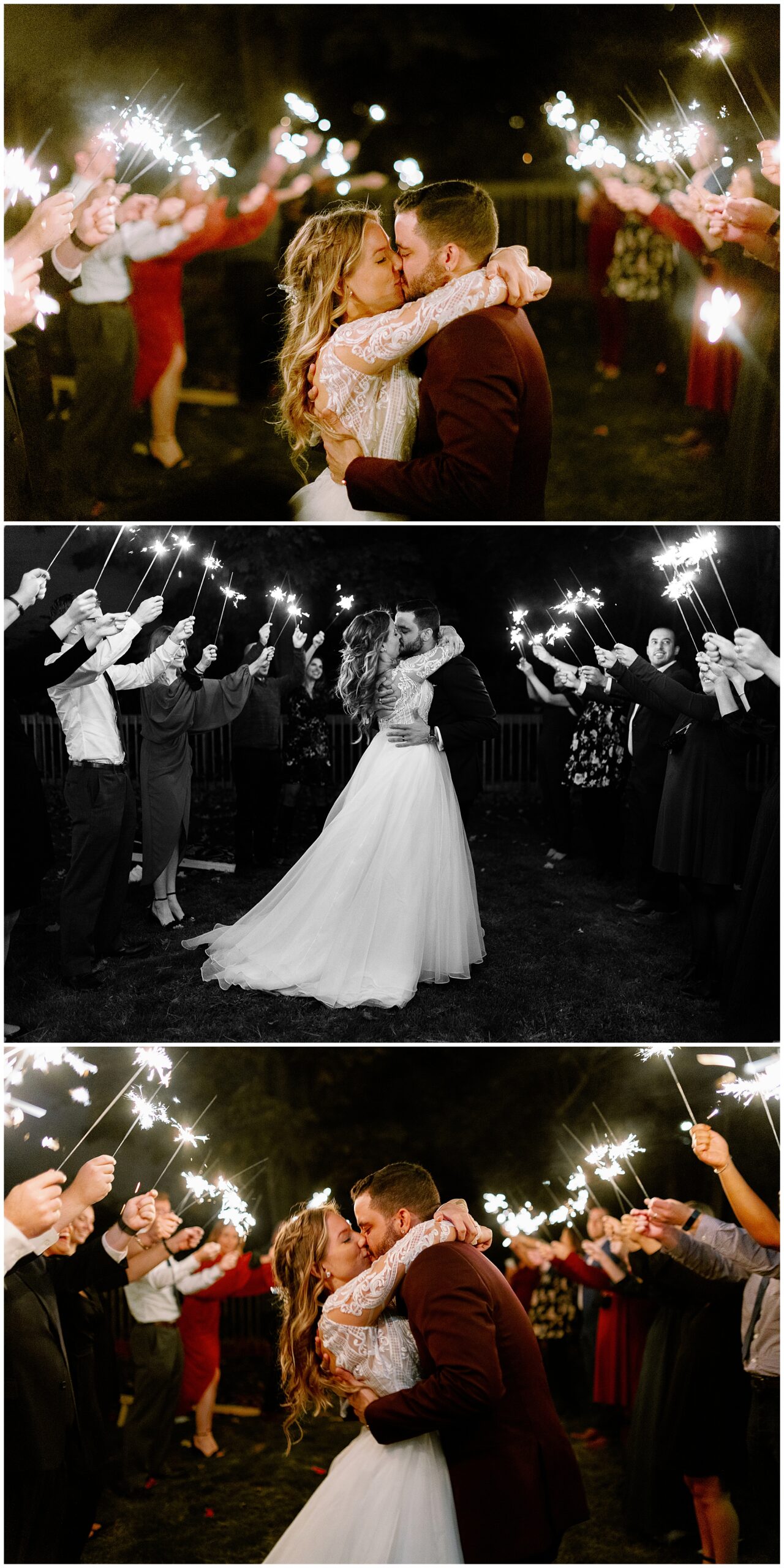 As night fell, a few close family members gave heartfelt speeches during dinner. Molly and Alex shared their first dance under the tent, spinning and laughing as the string lights twinkled. Even without a formal dance floor, their joy filled the space. To close out the night, we captured their sparkler exit in the cool autumn air. It was a glowing finale that perfectly wrapped up their backyard wedding in Westchester County.