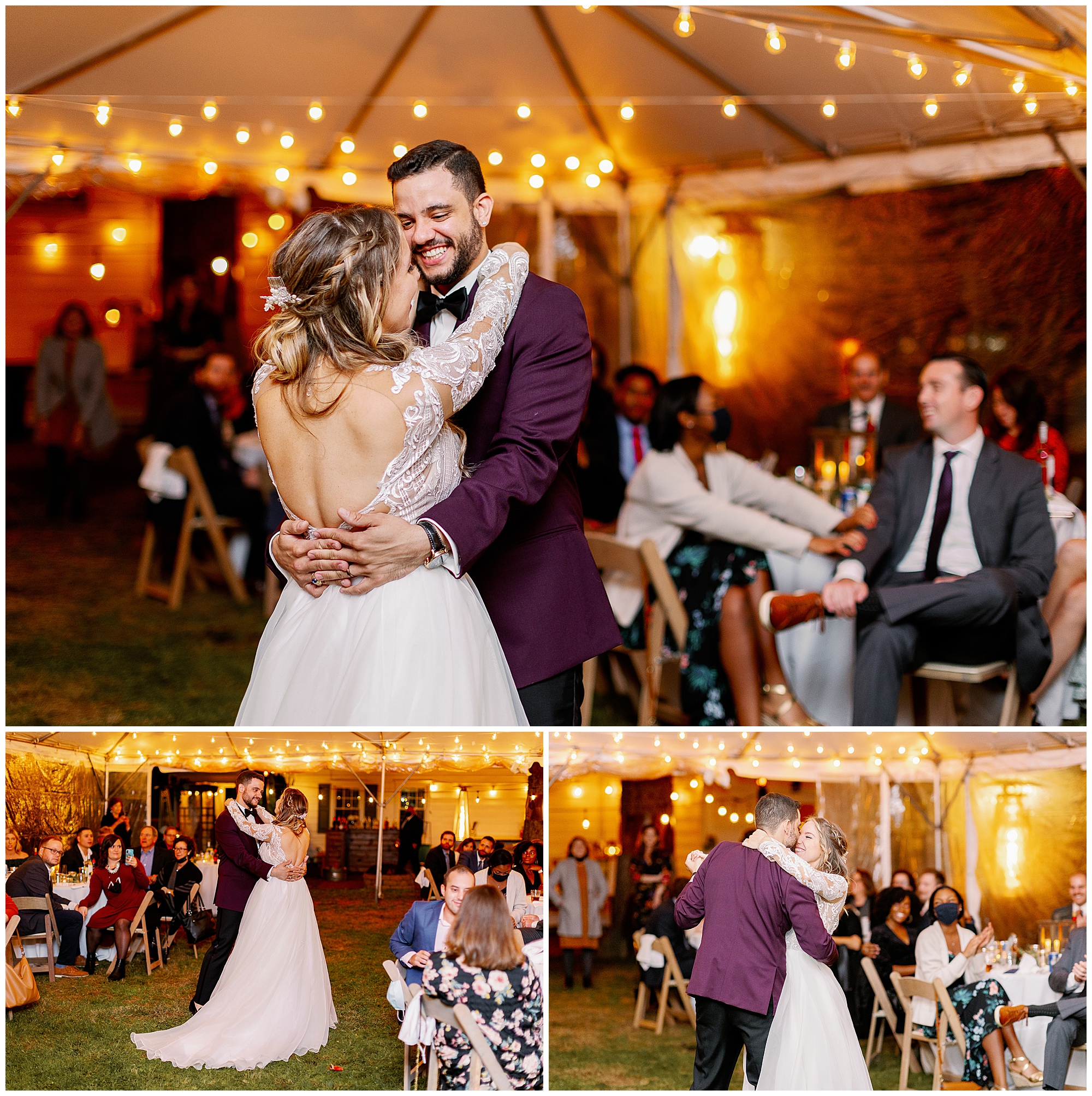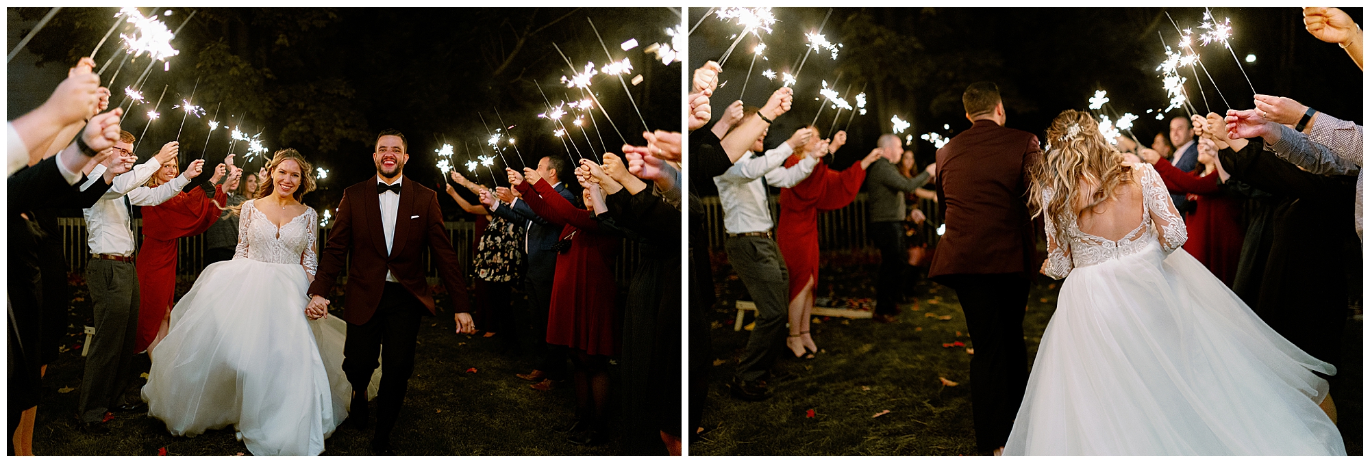 As night fell, a few close family members gave heartfelt speeches during dinner. Molly and Alex shared their first dance under the tent, spinning and laughing as the string lights twinkled. Even without a formal dance floor, their joy filled the space. To close out the night, we captured their sparkler exit in the cool autumn air. It was a glowing finale that perfectly wrapped up their backyard wedding in Westchester County.
