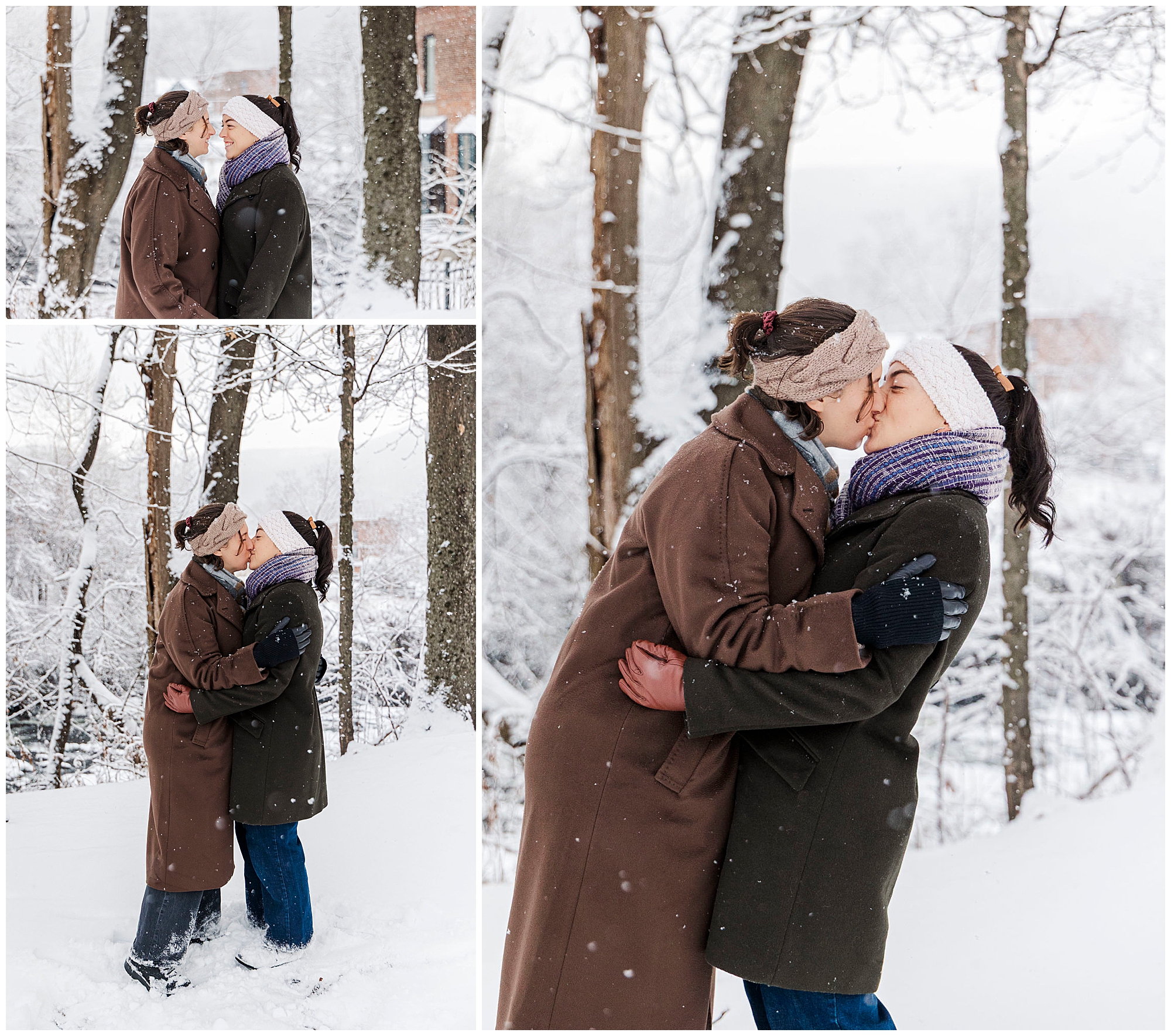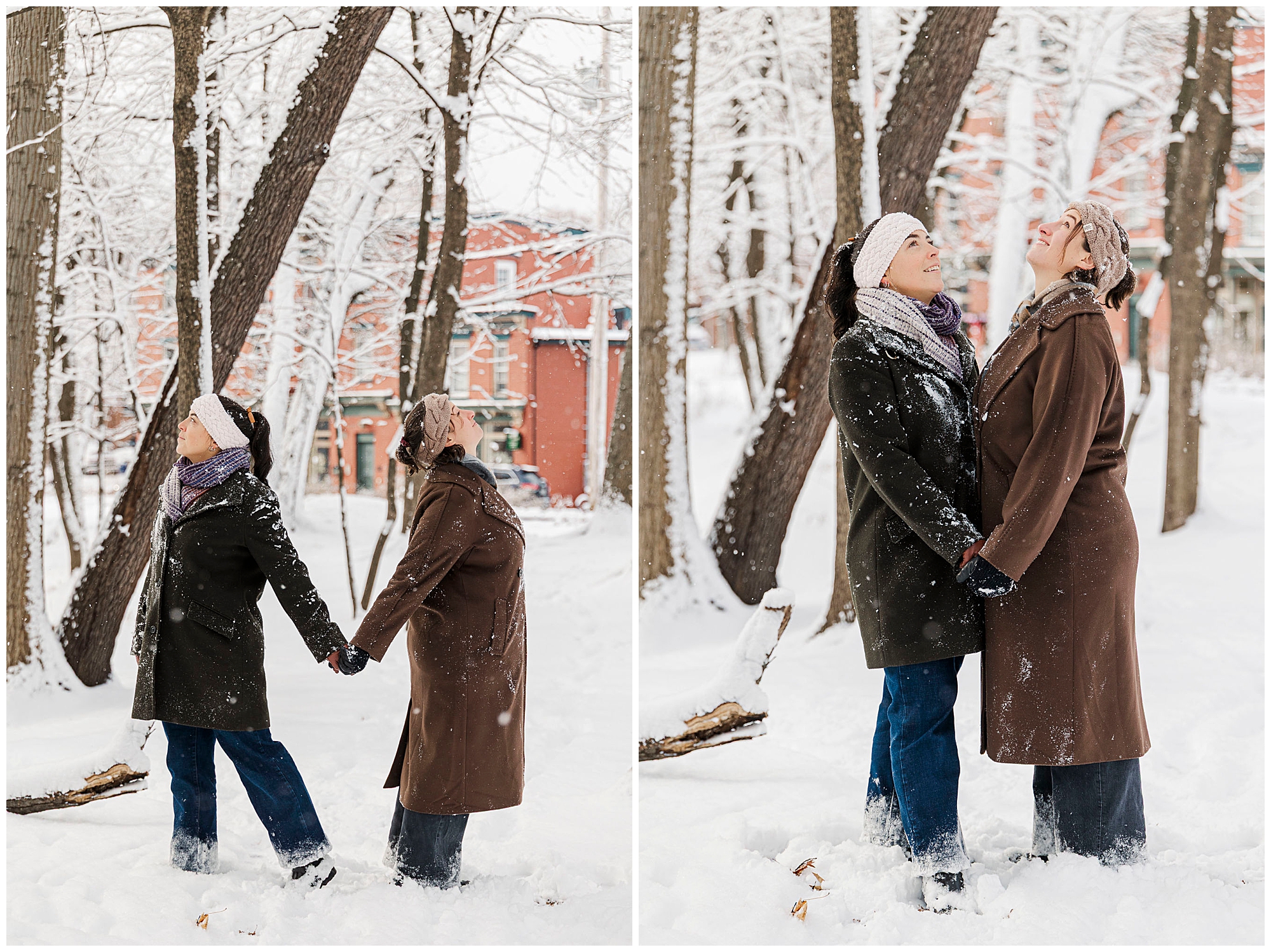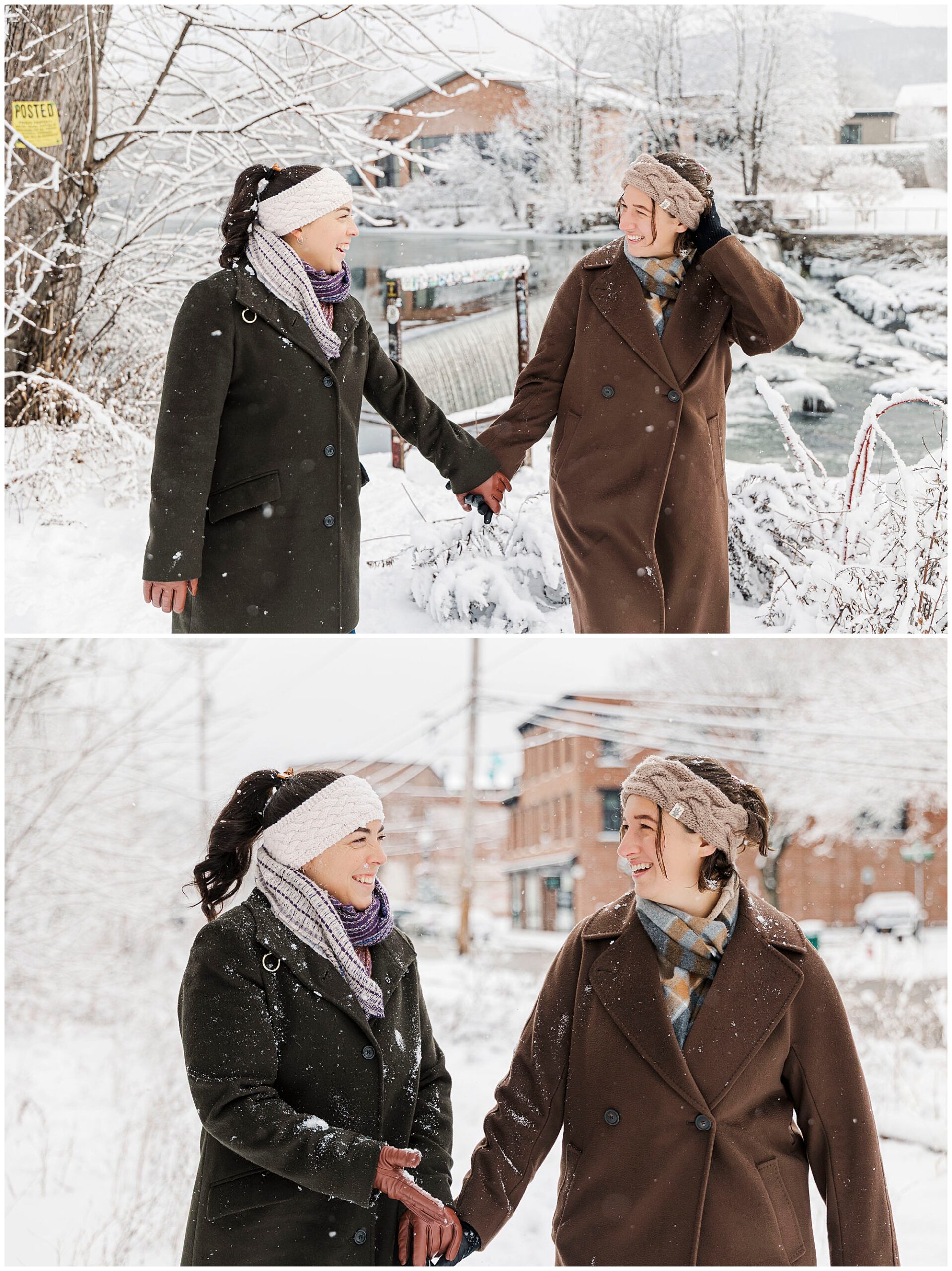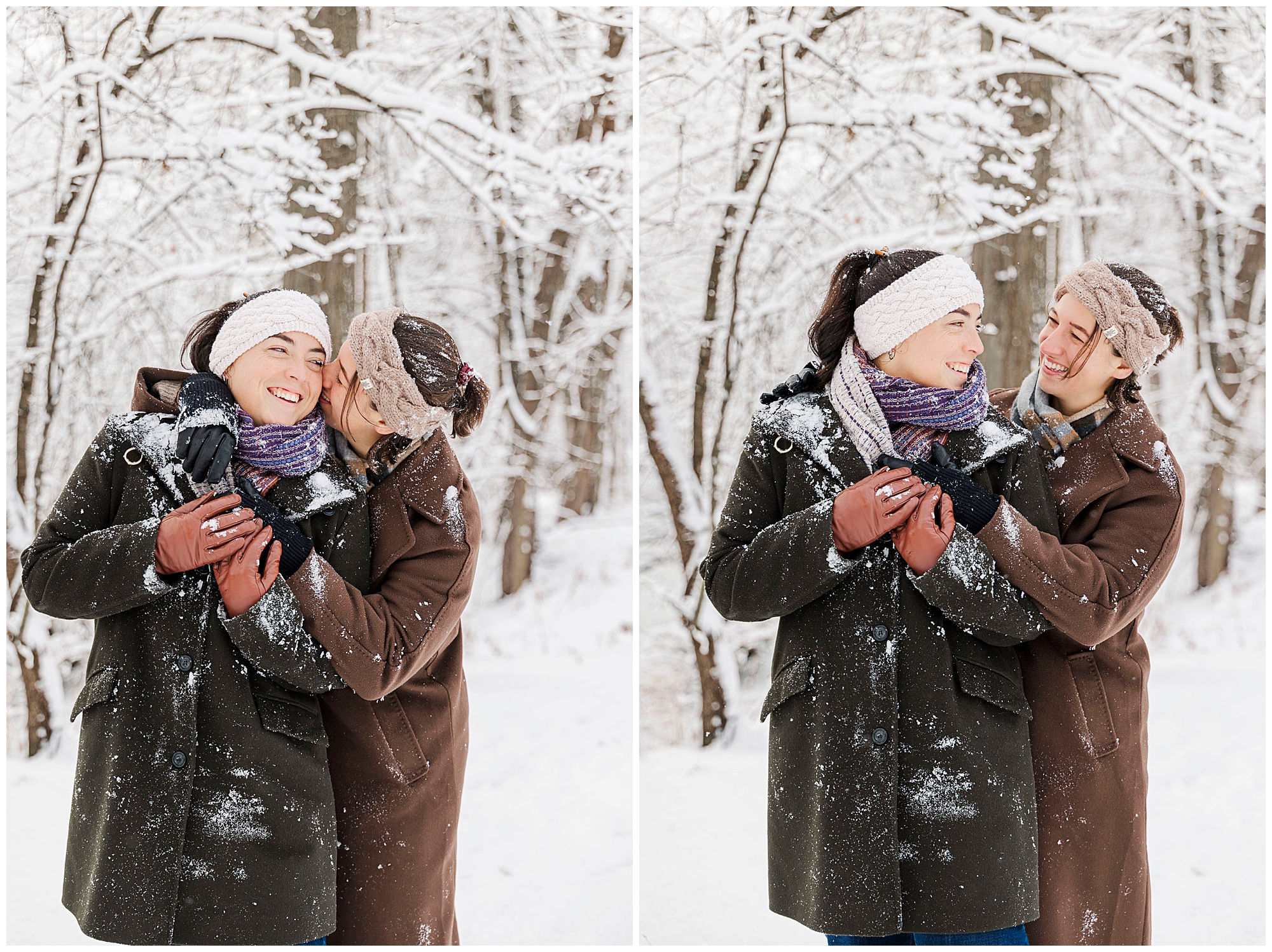 As Beacon wedding photographers, we prioritize candid moments over staged poses. Similarly, Emma and Claire’s love story unfolded organically throughout the session. They held each other close against the winter cold. Meanwhile, laughter erupted as snowflakes landed on their noses.