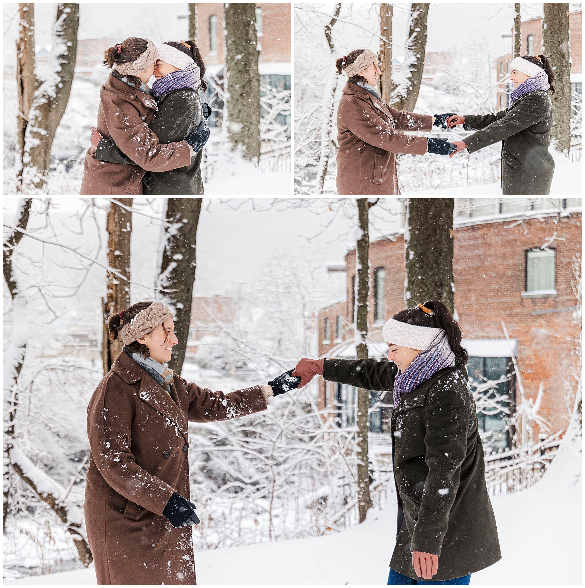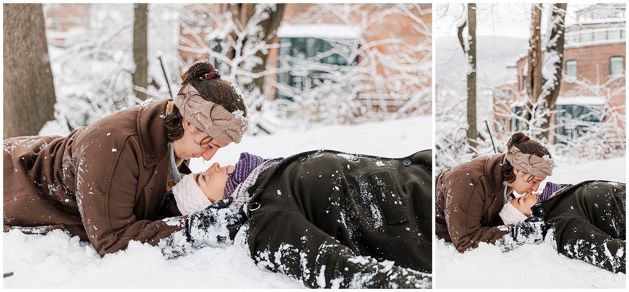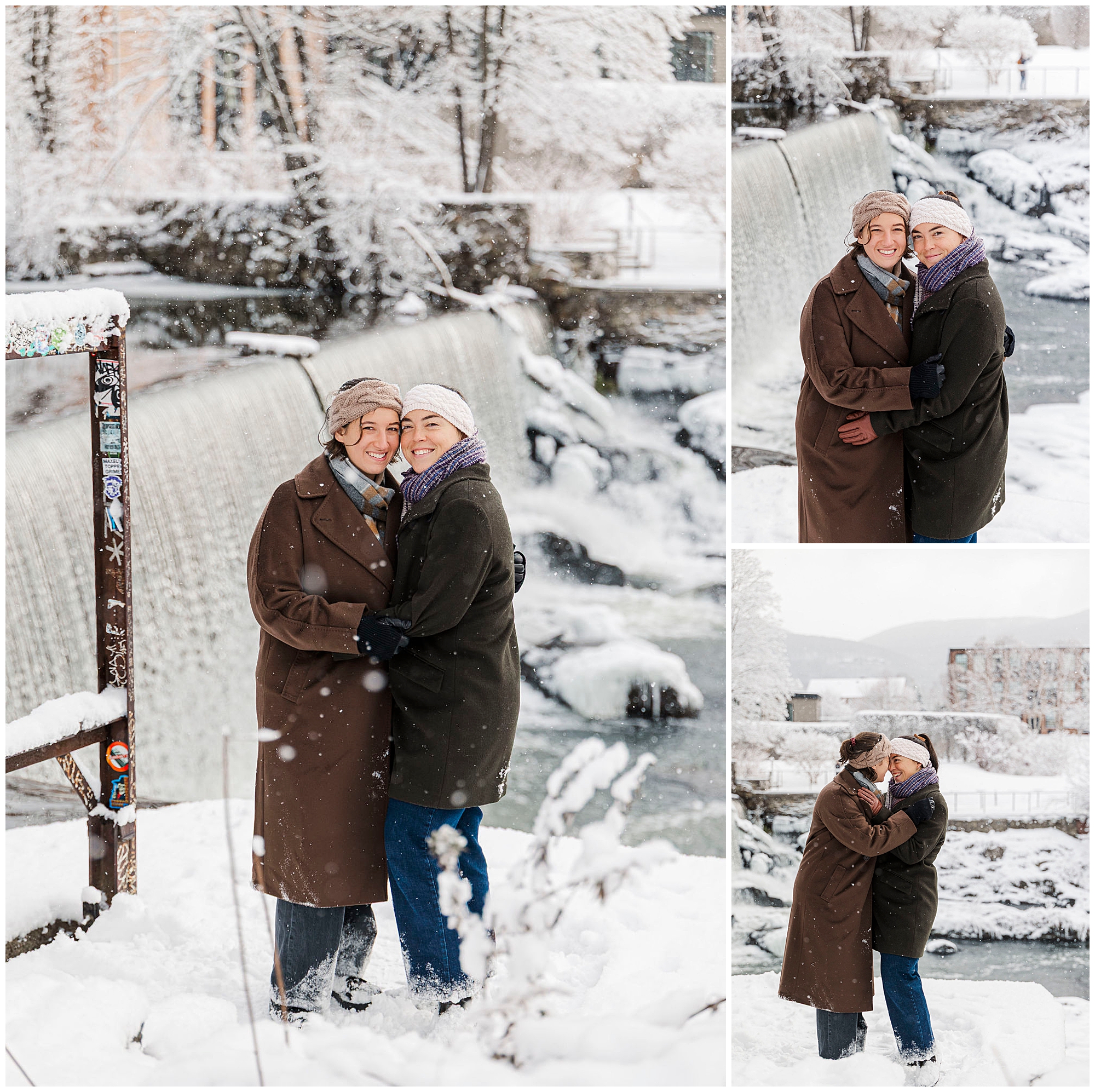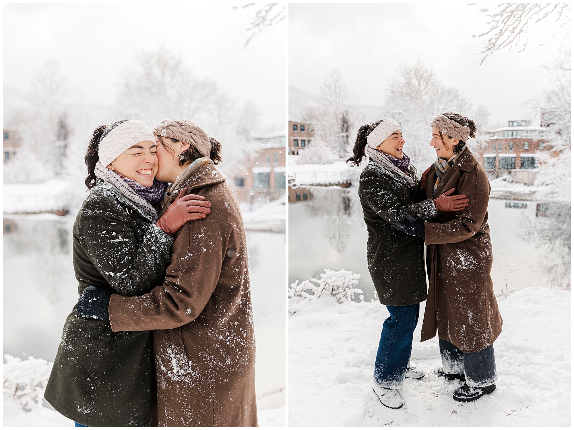 As Beacon wedding photographers, we prioritize candid moments over staged poses. Similarly, Emma and Claire’s love story unfolded organically throughout the session. They held each other close against the winter cold. Meanwhile, laughter erupted as snowflakes landed on their noses.
