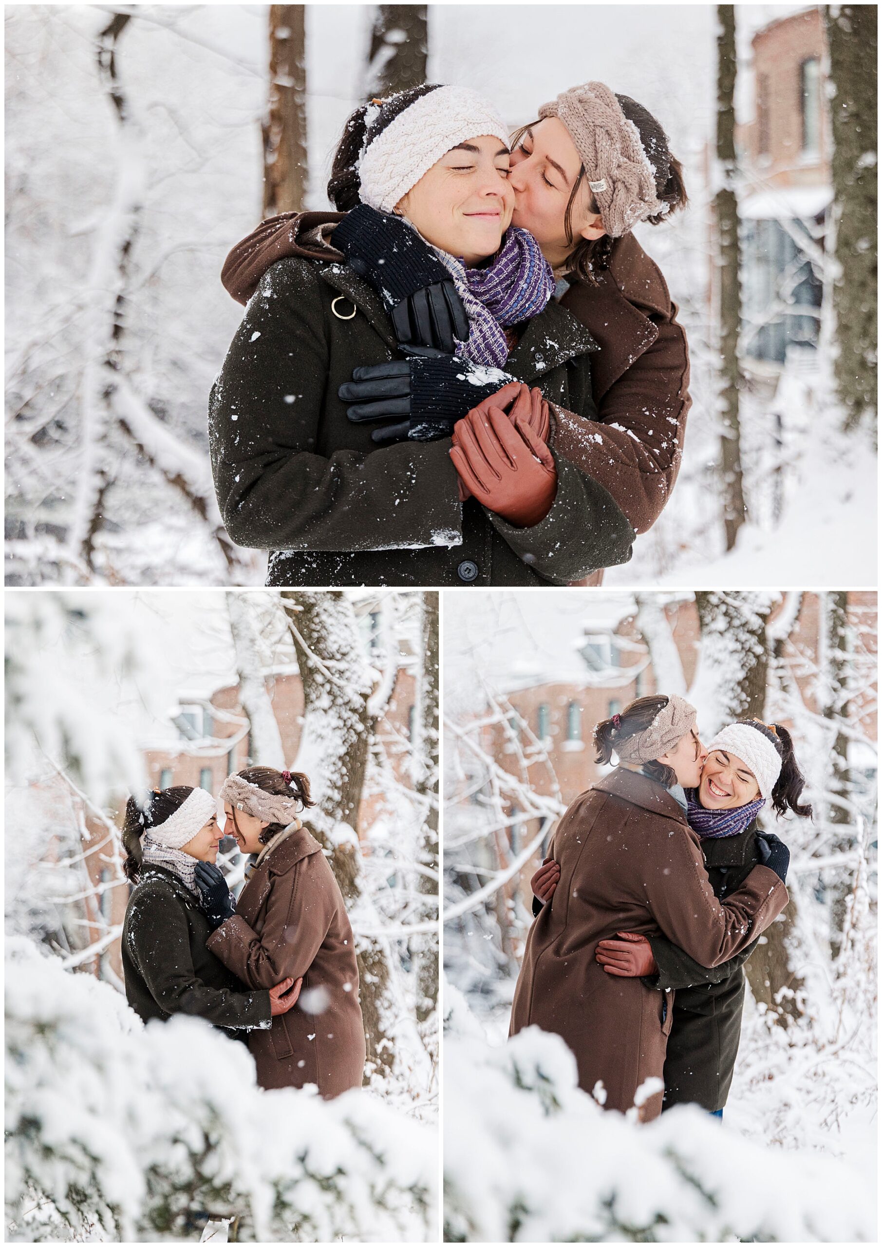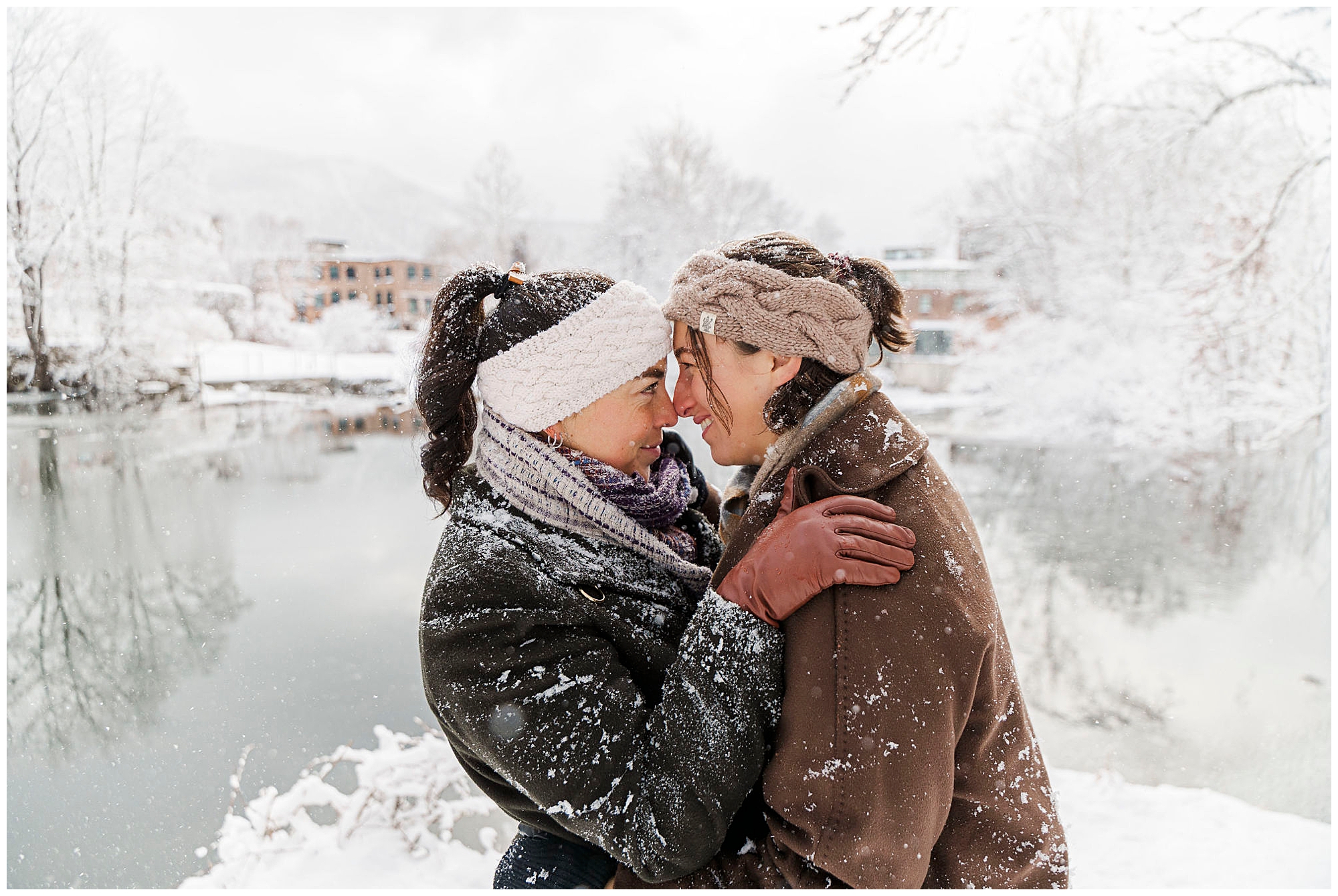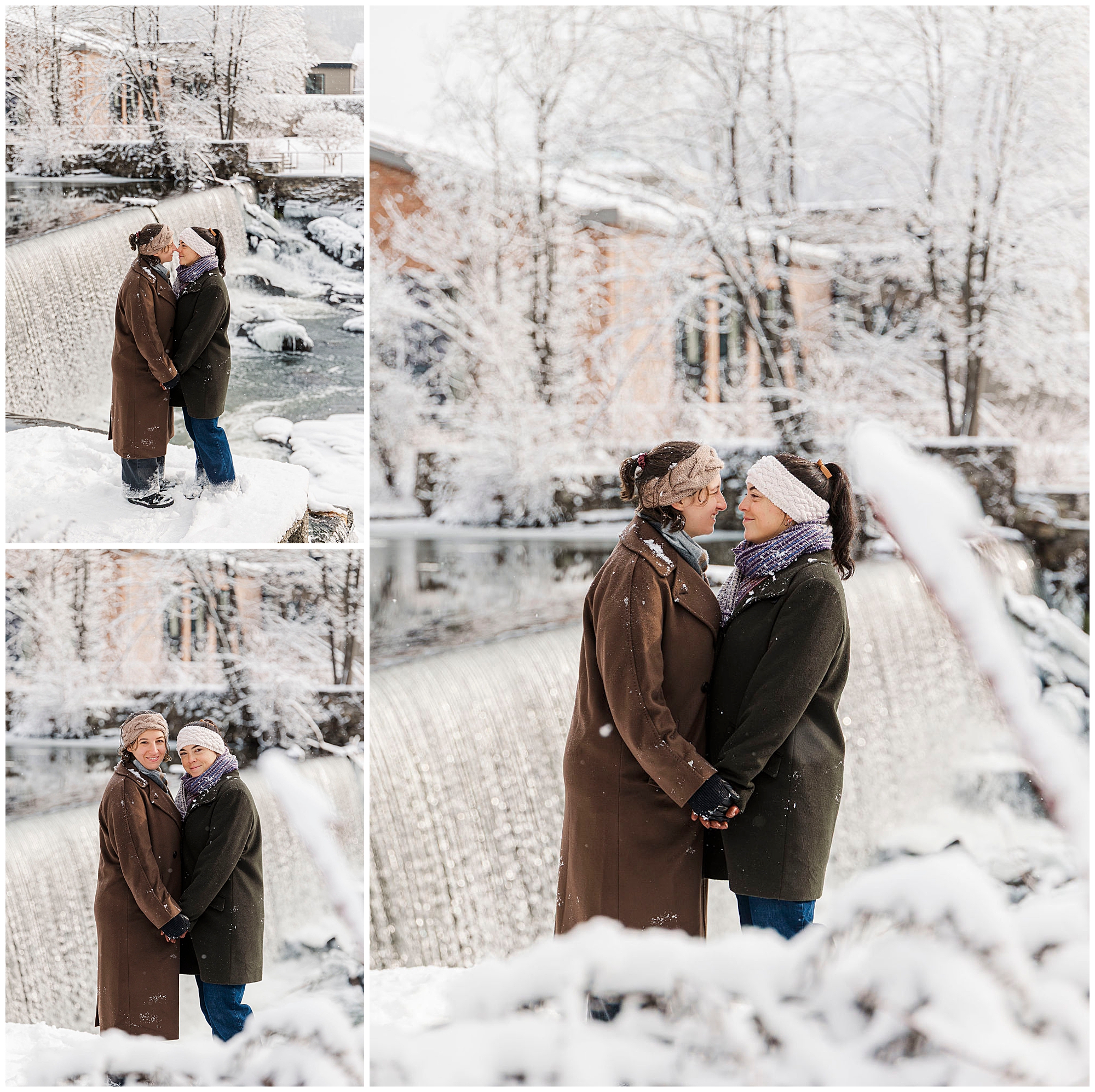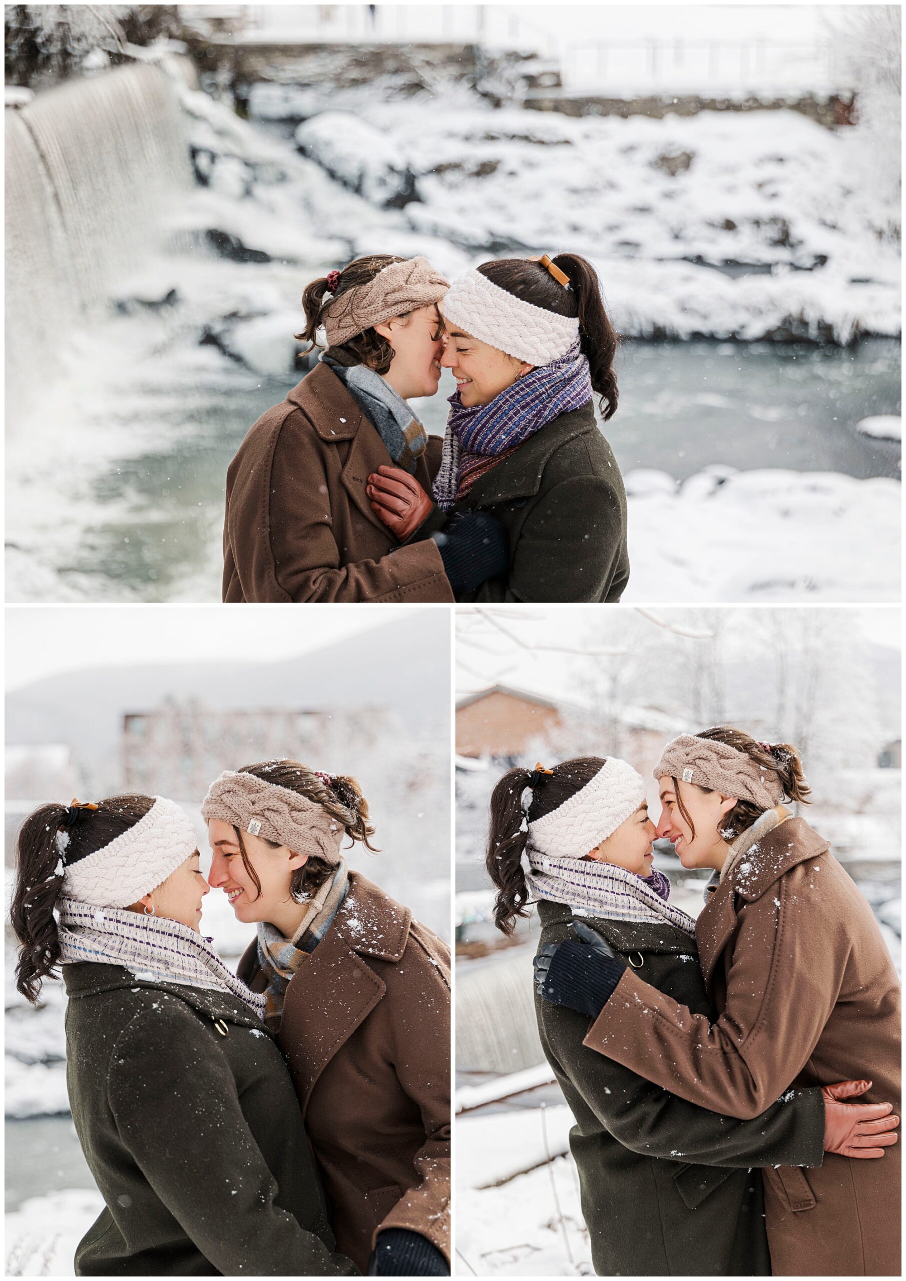 As Beacon wedding photographers, we prioritize candid moments over staged poses. Similarly, Emma and Claire’s love story unfolded organically throughout the session. They held each other close against the winter cold. Meanwhile, laughter erupted as snowflakes landed on their noses.