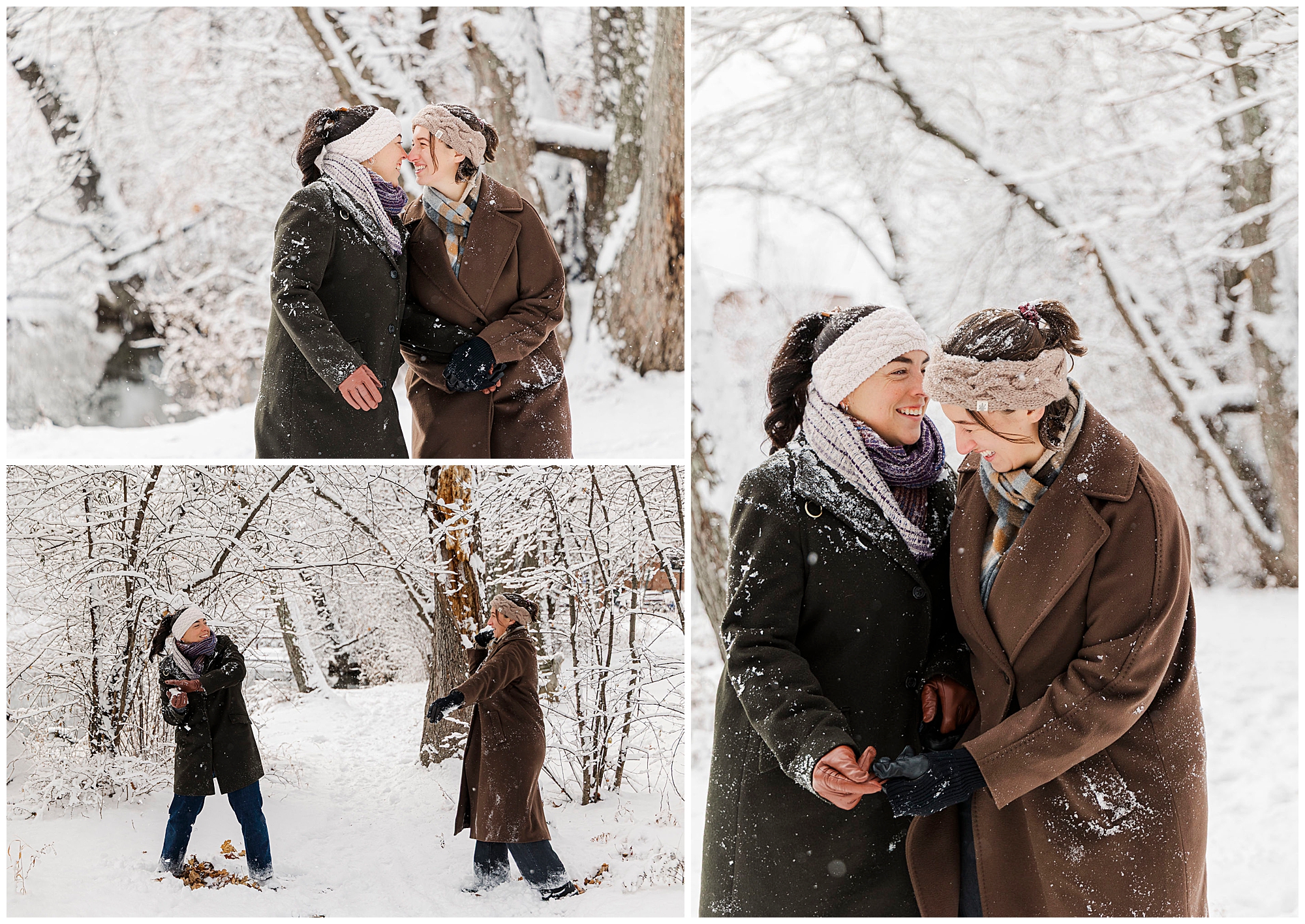 Weather forecasts can be unpredictable during Hudson Valley winters. Therefore, we stayed in close contact with Emma and Claire leading up to their session. When the forecast showed heavy snowfall, we made the call quickly. Additionally, we knew this fluffy, agreeable snow would create stunning photographs.