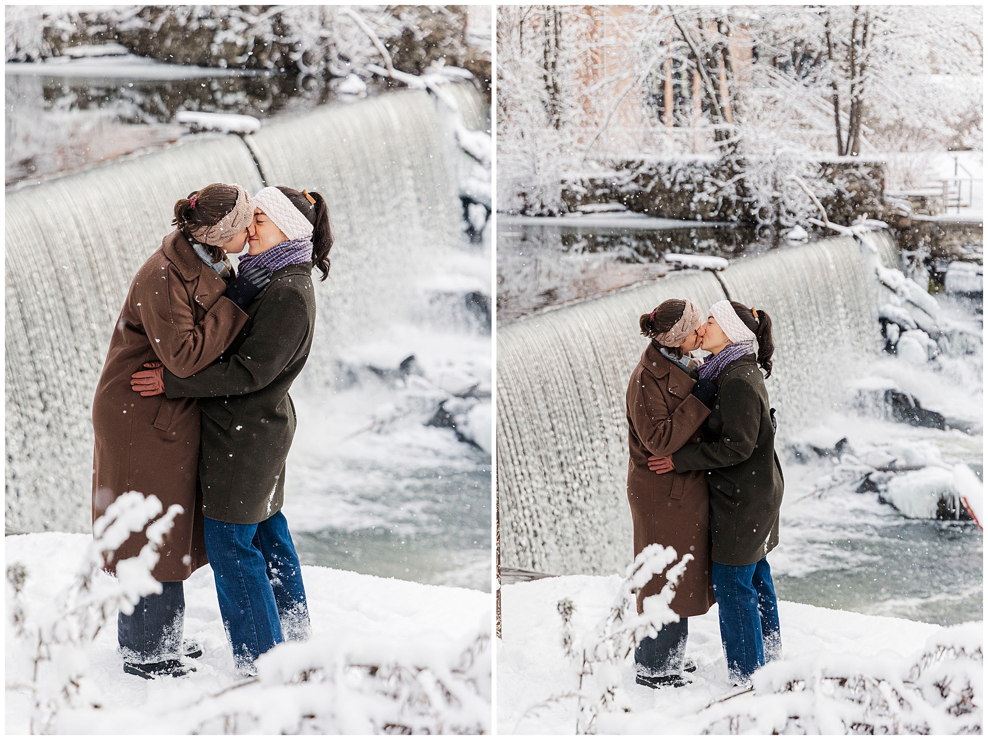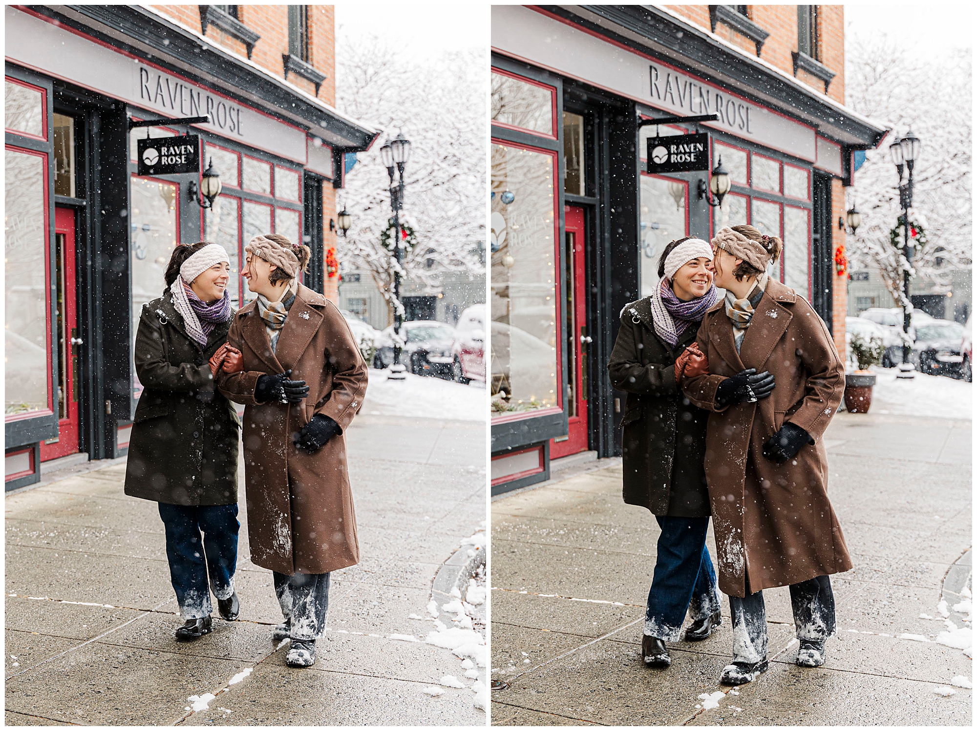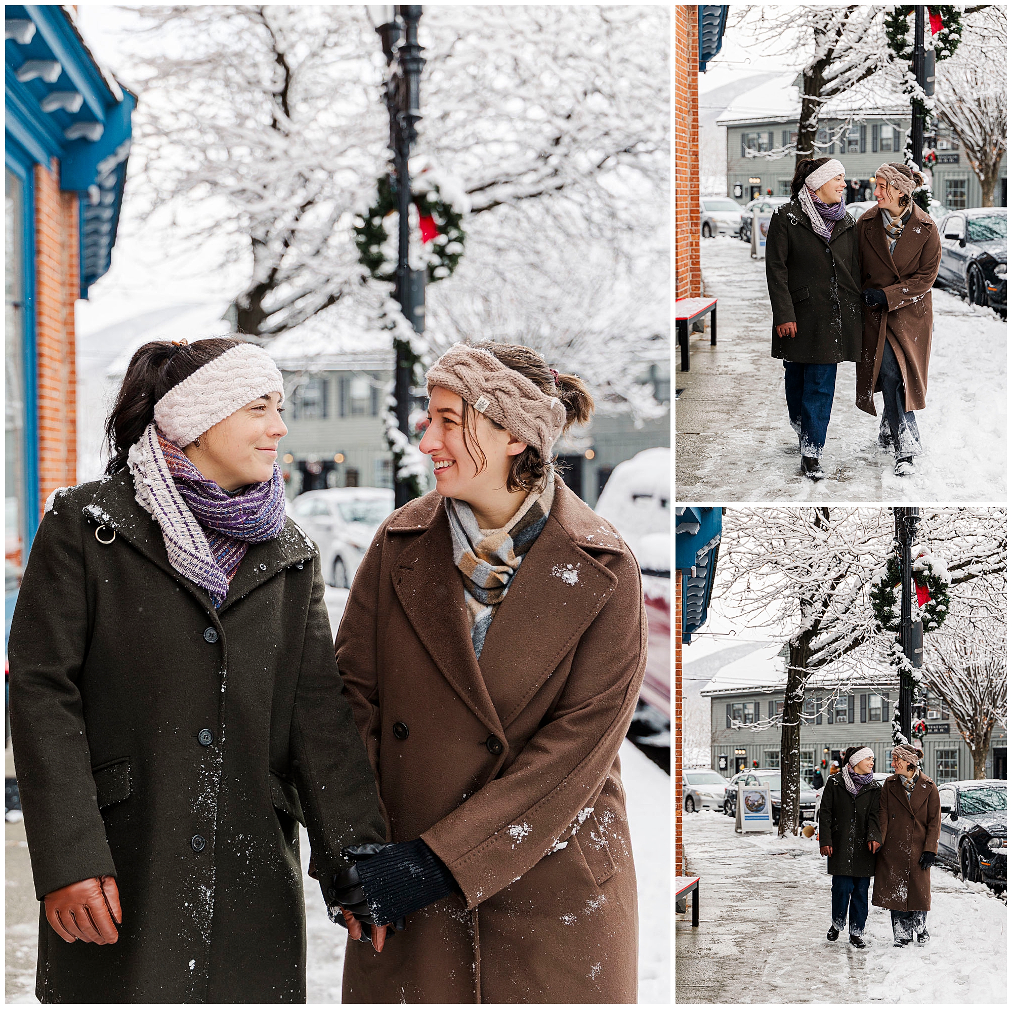 We concluded their snowstorm engagement photo shoot along Main Street in downtown Beacon. The small town atmosphere provided a charming contrast to the natural settings. Furthermore, the historic storefronts looked especially picturesque covered in snow.