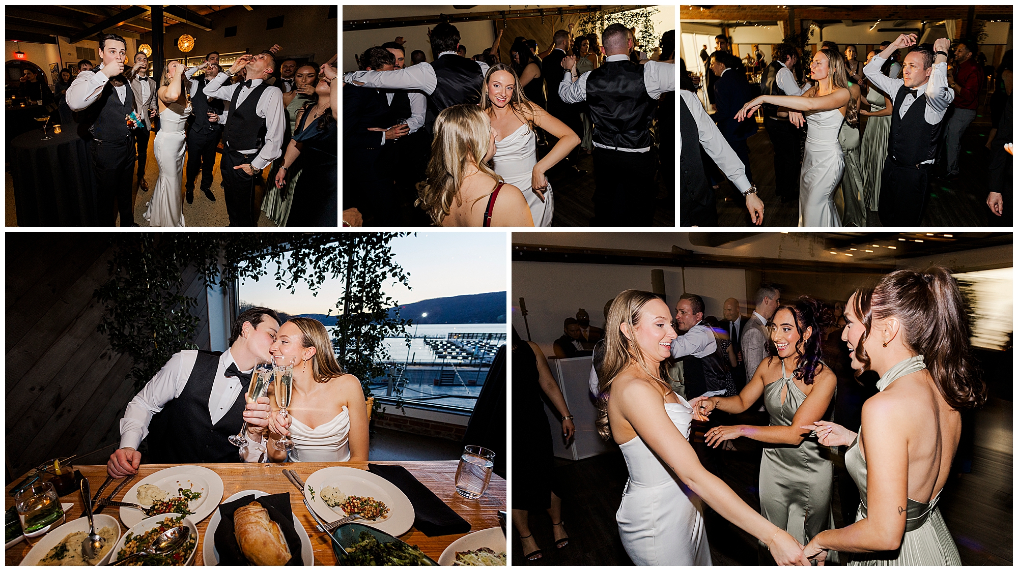 The Peekskill wedding reception began naturally, with no formal introductions or flashy entrances to kick things off. Jess and Rob simply walked in and sat with guests, setting such a beautifully easy and joyful tone. Heartfelt and hilarious speeches from close friends had the whole room alternating between laughter and happy tears. Then the dance floor erupted, and this Factoria at Charles Point wedding truly became one unforgettable and joyful party.