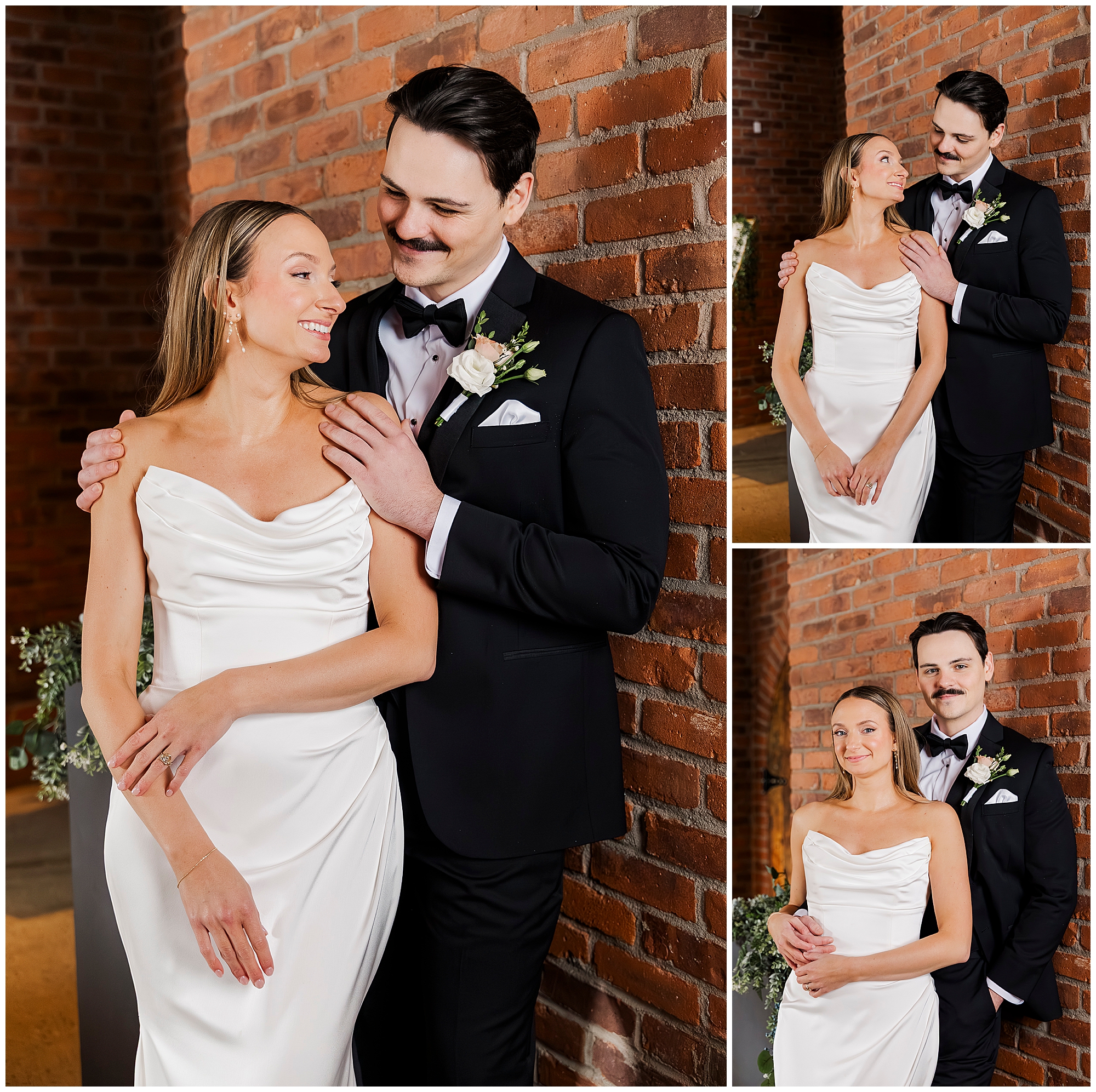 Factoria at Charles Point sits right on the Hudson River in the heart of Peekskill, New York. This stunning venue features brick accent walls, iron ceiling details, and beautiful warm lighting throughout its expansive event space. Boasting 34,000 square feet, it can comfortably host up to 180 guests for ceremonies and receptions alike. As Hudson Valley wedding photographers, we were instantly captivated by this venue’s incredible industrial-chic charm.