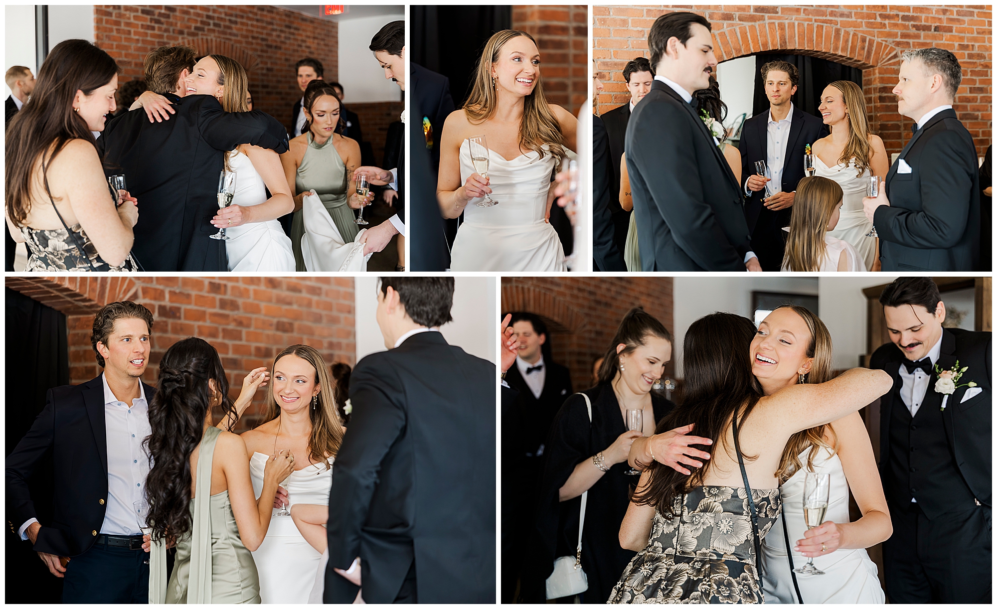 The Factoria at Charles Point wedding cocktail hour took place in the charming bar space, and it was lively. Their food was outstanding, and guests mingled freely over drinks in that warm and beautifully inviting atmosphere throughout. We love how naturally this venue flows from one part of the celebration to the next throughout the day. As a Beacon-based photography team, we thrive in spaces where the energy is genuine and the joy feels contagious.
