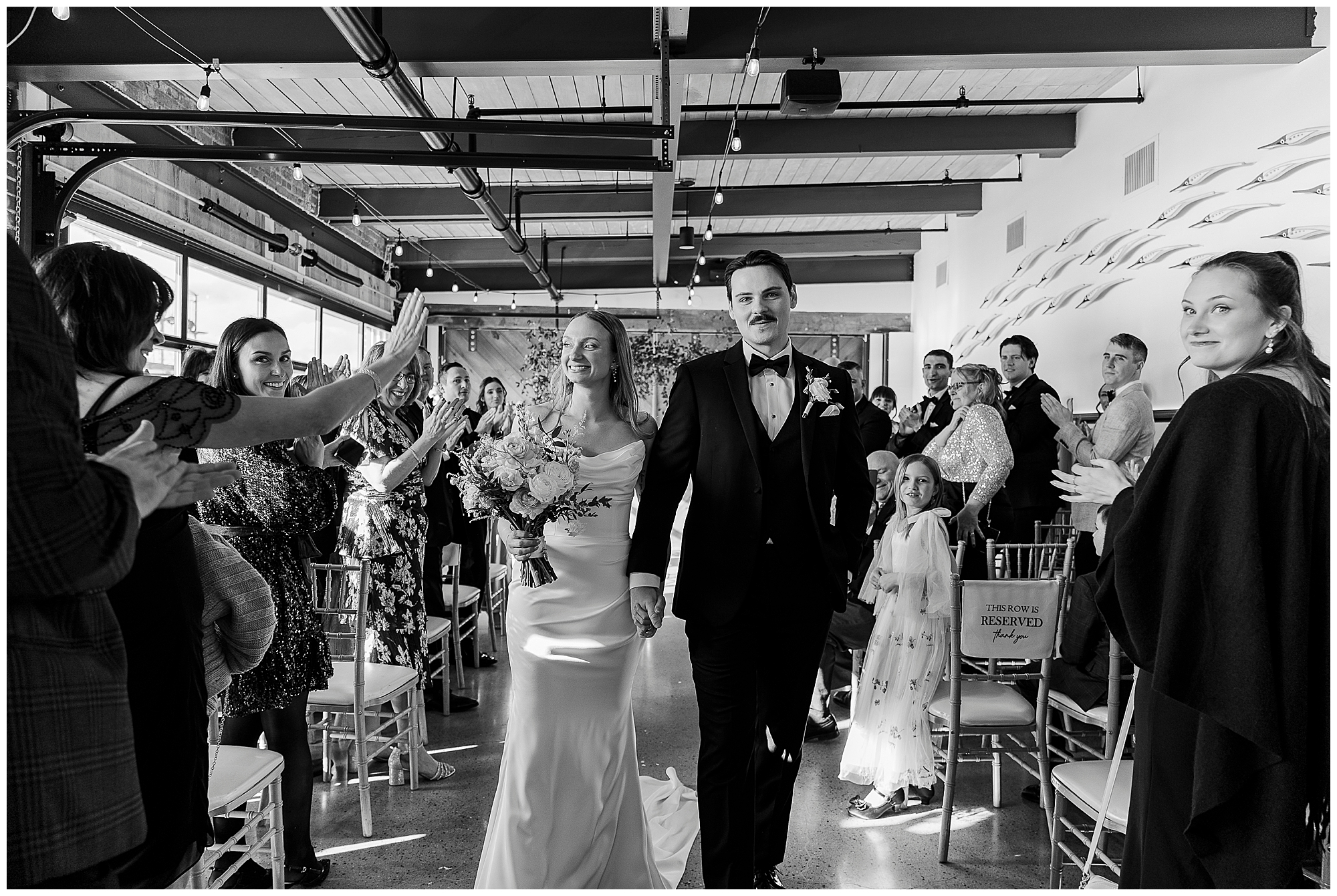 The ceremony at this Factoria at Charles Point wedding was one of the most moving we have ever photographed. Jess and Rob walked up the aisle together, which created such a powerful and tender moment for everyone present. Rob’s brother officiated and delivered words that were funny, heartfelt, and absolutely full of love for this wonderful couple. Happy tears and laughter filled the room, and we felt so honored to be there capturing every single moment.