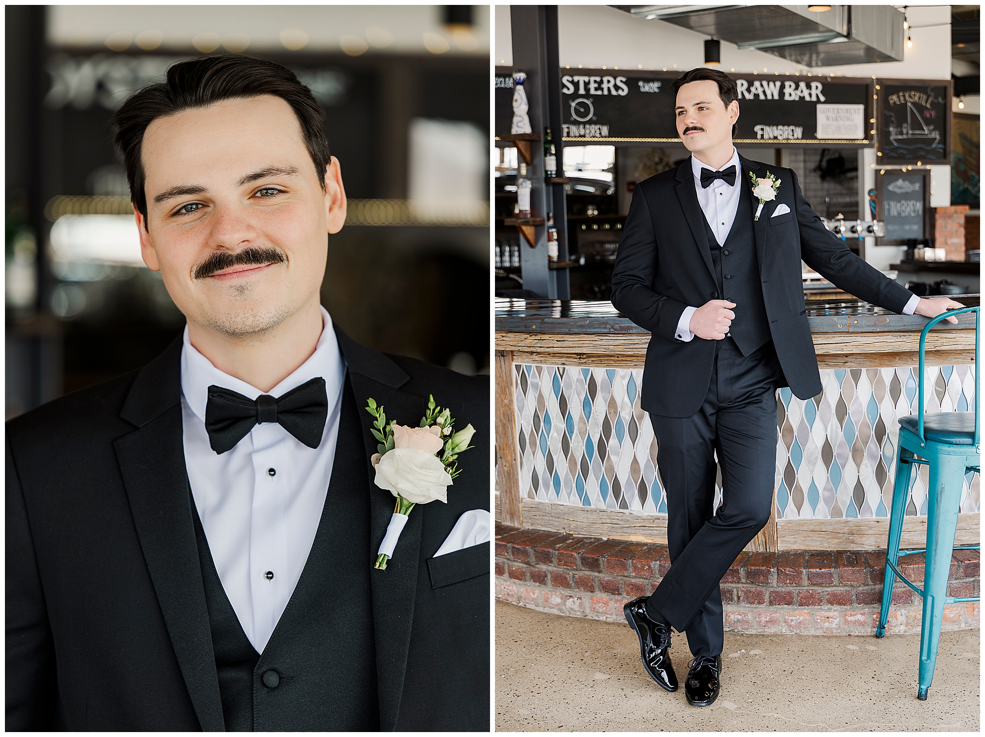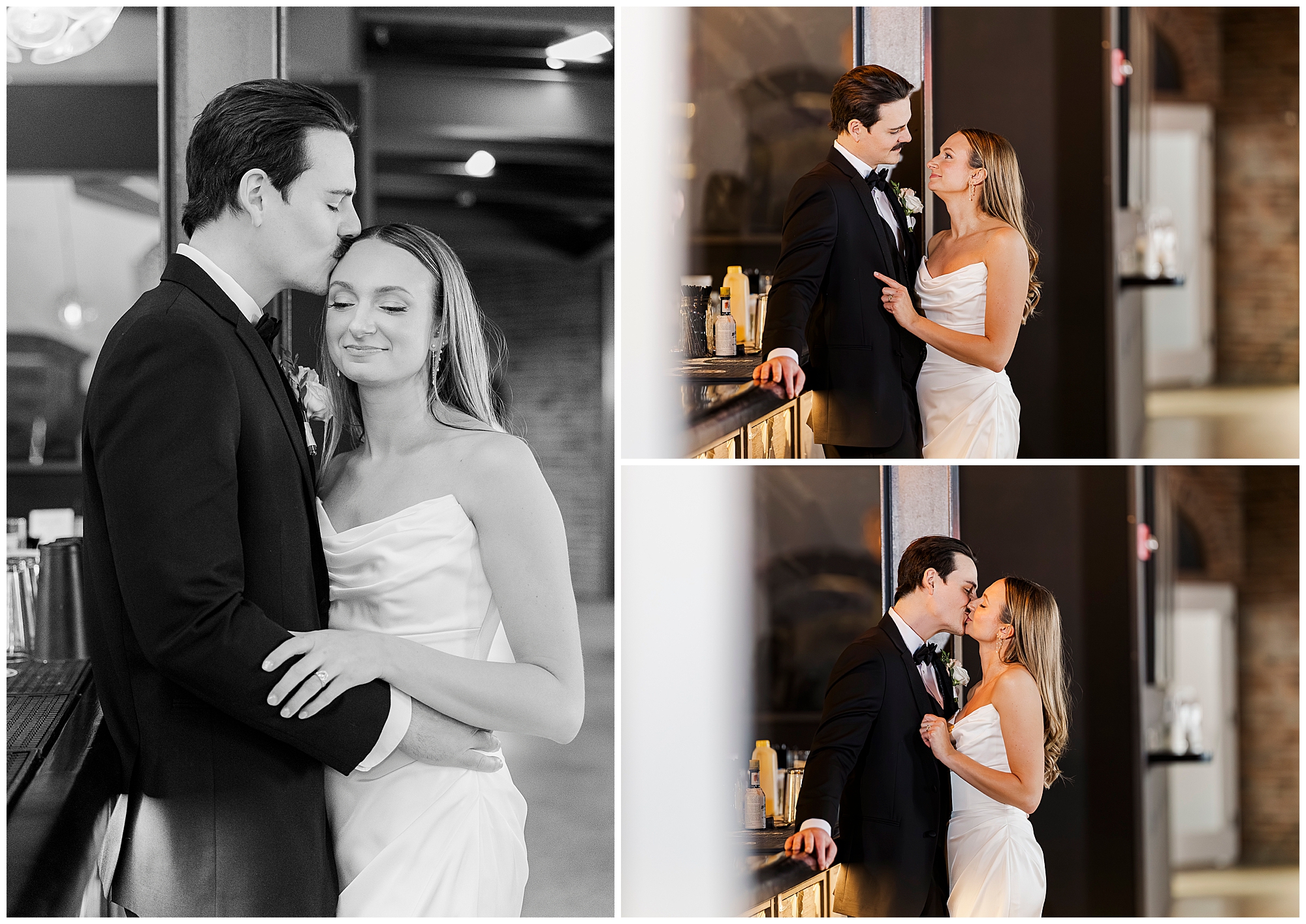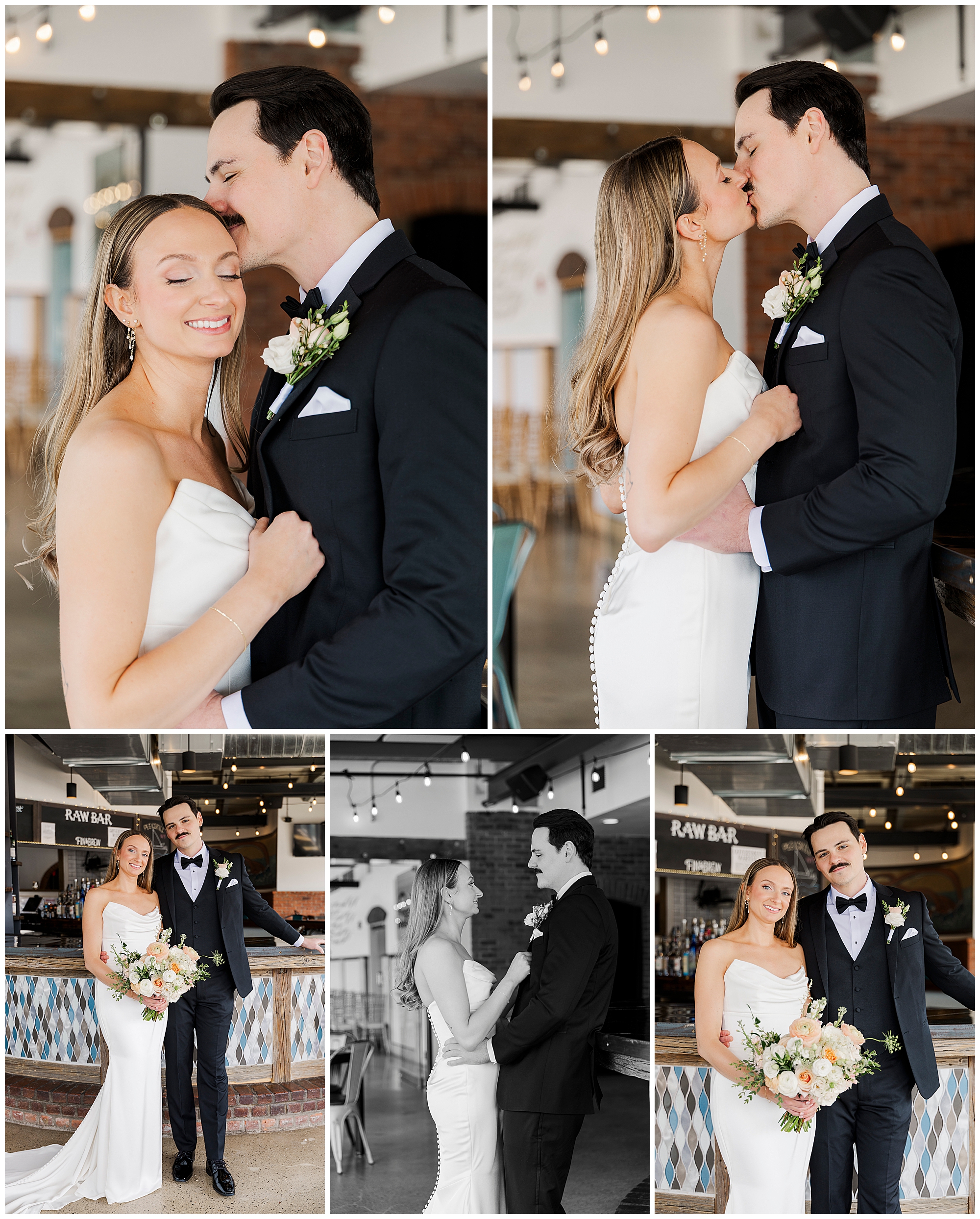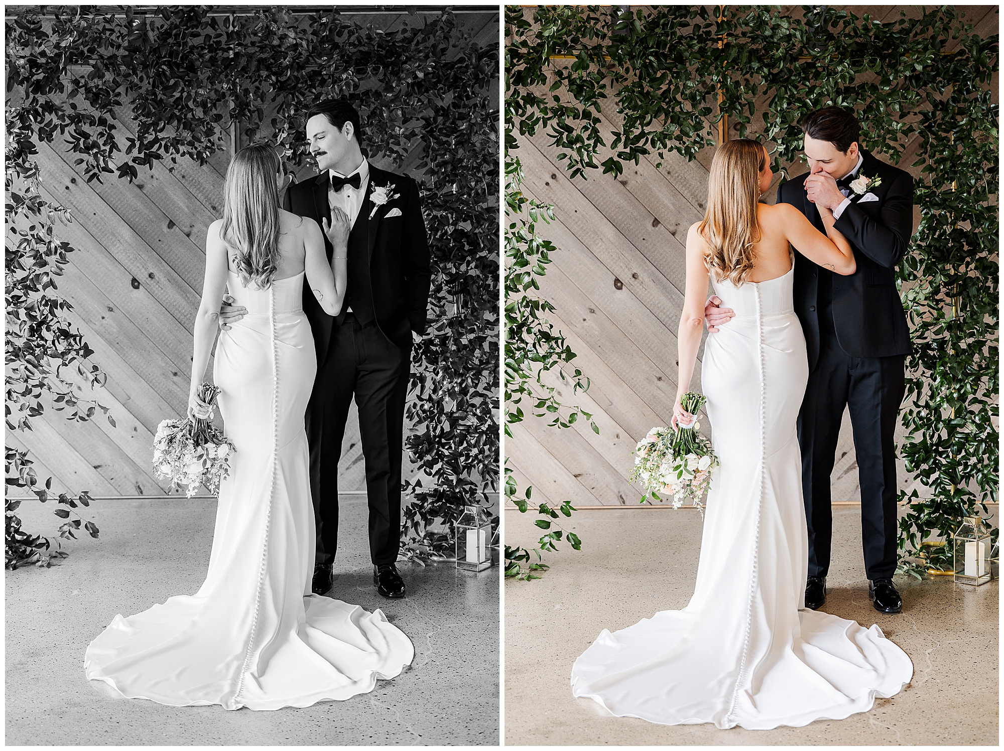 After the first look at this Factoria at Charles Point wedding, we explored the venue together for portraits. The bar area offered charming and intimate backdrops that we absolutely loved working with for couple portraits. We also used the beautiful ceremony arch for group photos, which gave us a classic and polished look. Indeed, this venue gave us such endless and exciting options for creative and authentic portrait work.