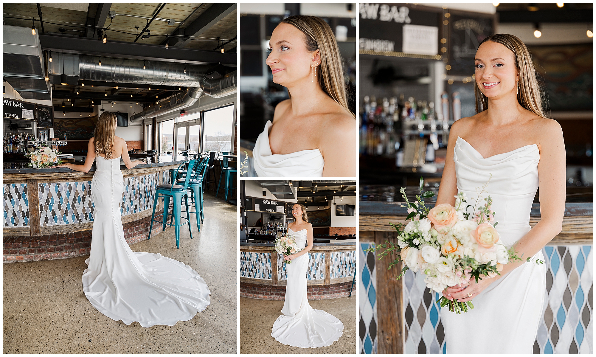 The Factoria at Charles Point wedding cocktail hour took place in the charming bar space, and it was lively. Their food was outstanding, and guests mingled freely over drinks in that warm and beautifully inviting atmosphere throughout. We love how naturally this venue flows from one part of the celebration to the next throughout the day. As a Beacon-based photography team, we thrive in spaces where the energy is genuine and the joy feels contagious.