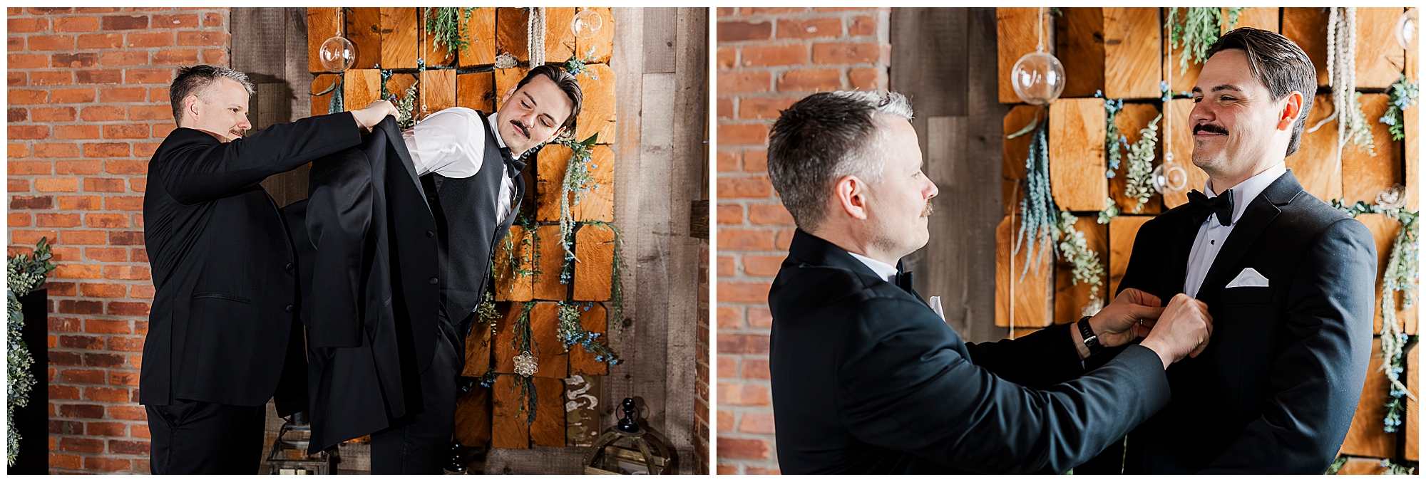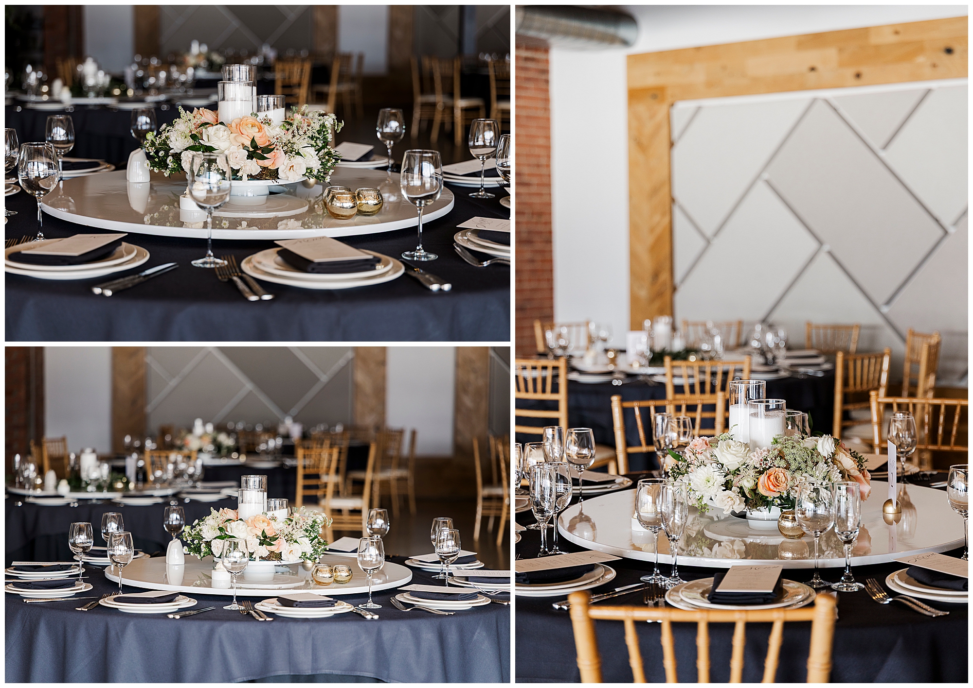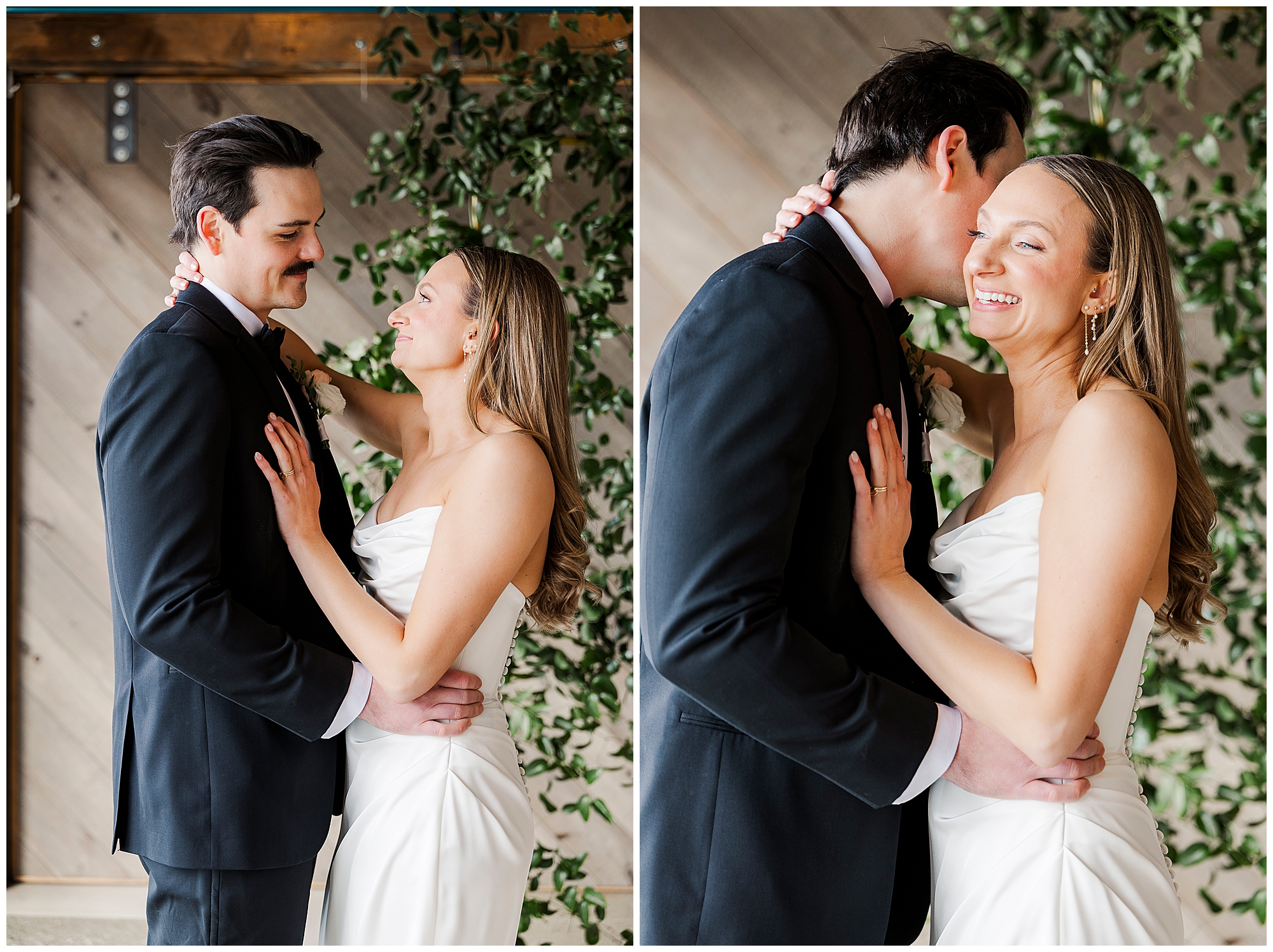 We started with Jess getting ready in her gorgeous bridal suite, which was filled with soft and beautiful light. Rob got ready in the front lobby area, which offered its own wonderful natural light throughout the space. The industrial architecture of this venue glows beautifully on a bright spring day with sunshine pouring through large windows. As a Beacon-based photography team photographing our first Factoria at Charles Point wedding here, we were completely captivated.