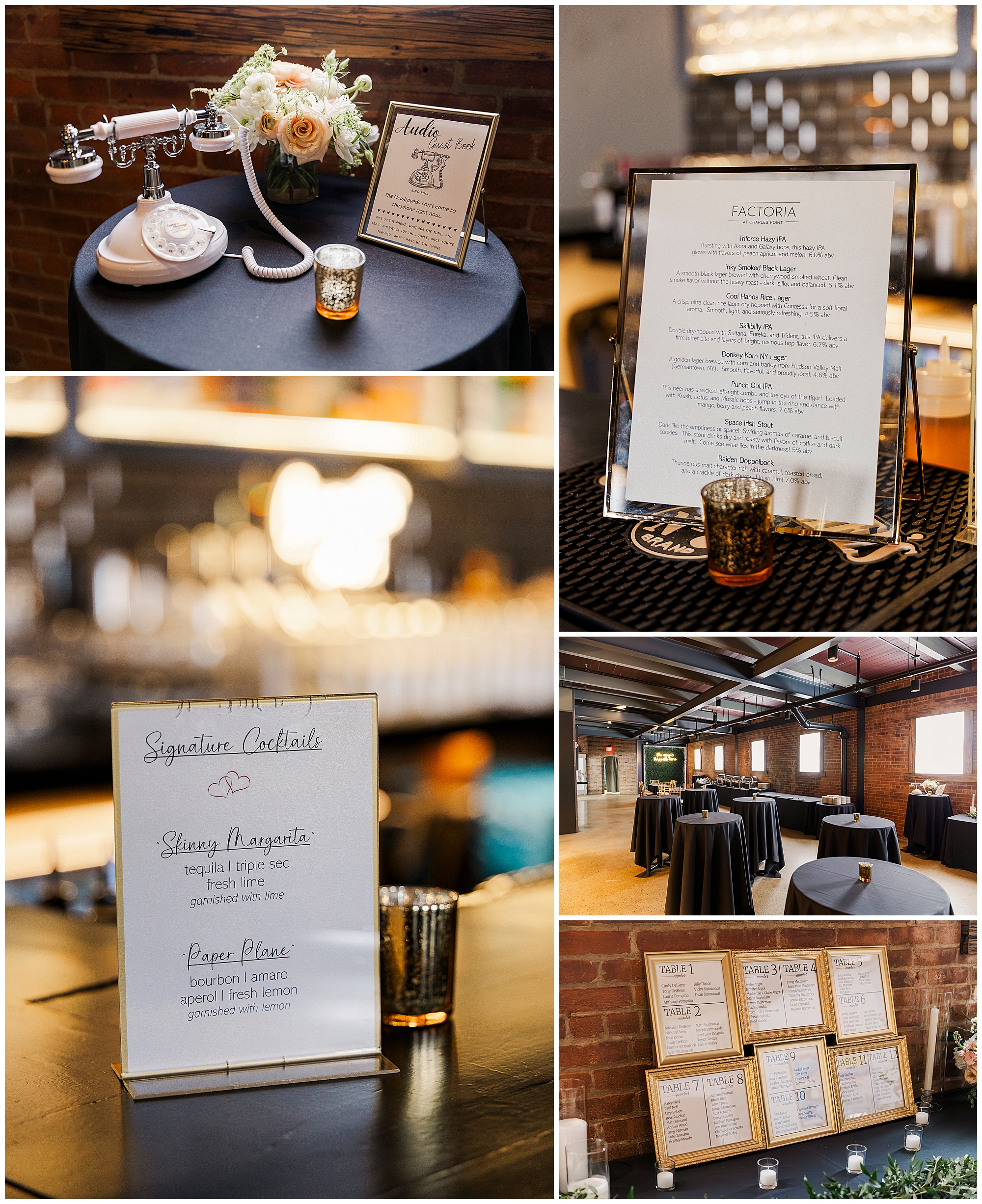 The vendors behind this Factoria at Charles Point wedding deserve so much credit for making it truly special. Makeup came from Simply Elegant Bridal, hair from Studio Blue NY, and gorgeous florals from Andrea Jean Events. DJ and photo booth were by APB Entertainment, and there was also a wonderful coffee cart from Espresso Guys. All venue and catering was beautifully managed by the incredible team at Factoria at Charles Point.