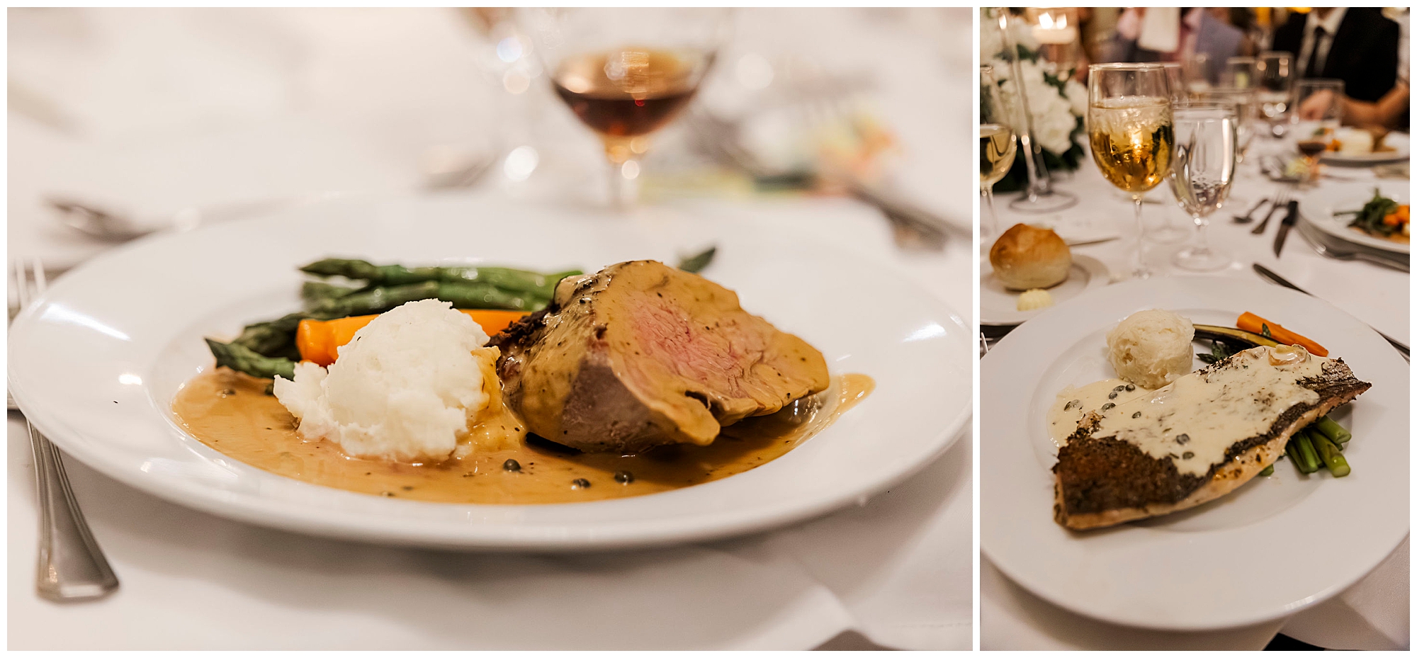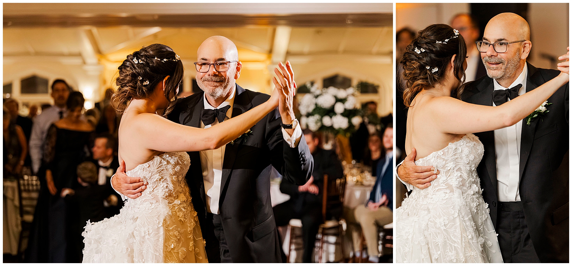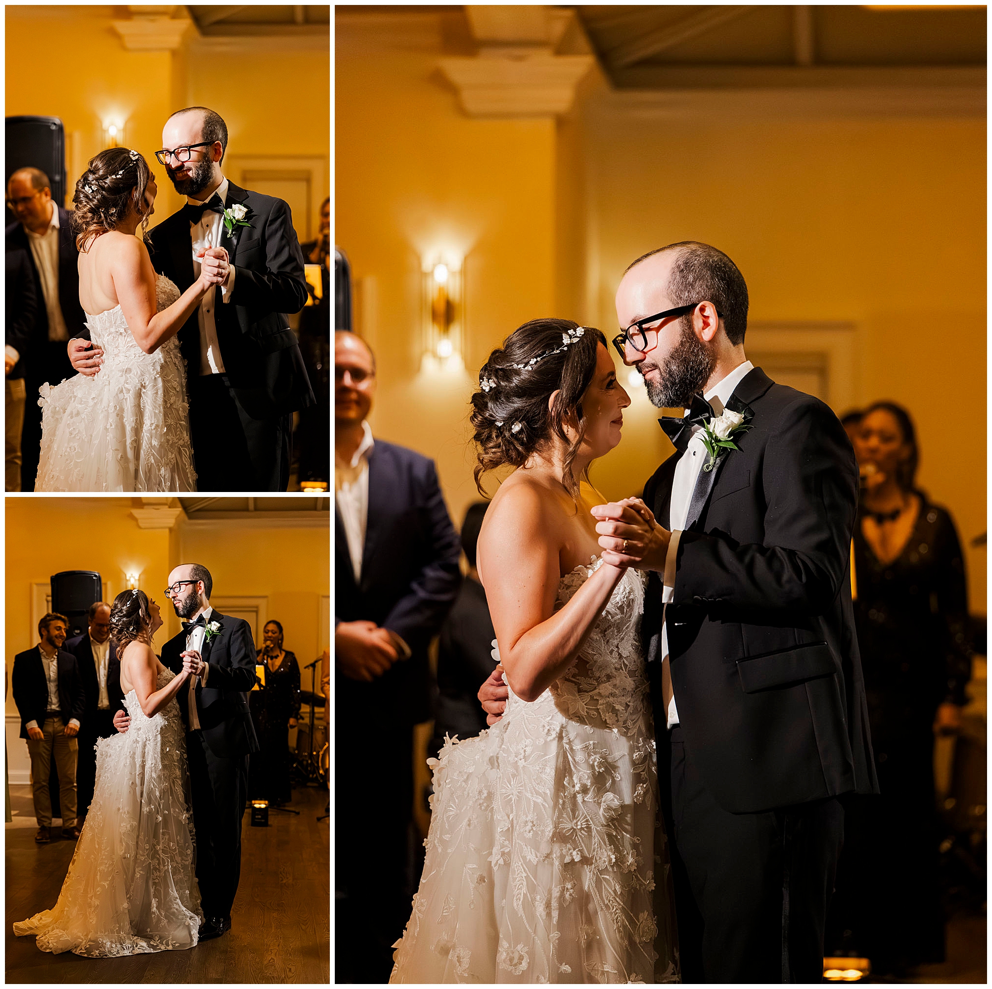 Inside the ballroom, the celebration continues with dinner and dancing. The room is elegant yet welcoming, filled with candlelight and laughter. Parents, best men, and the maid of honor share heartfelt speeches. Every detail feels intentional and full of love.
