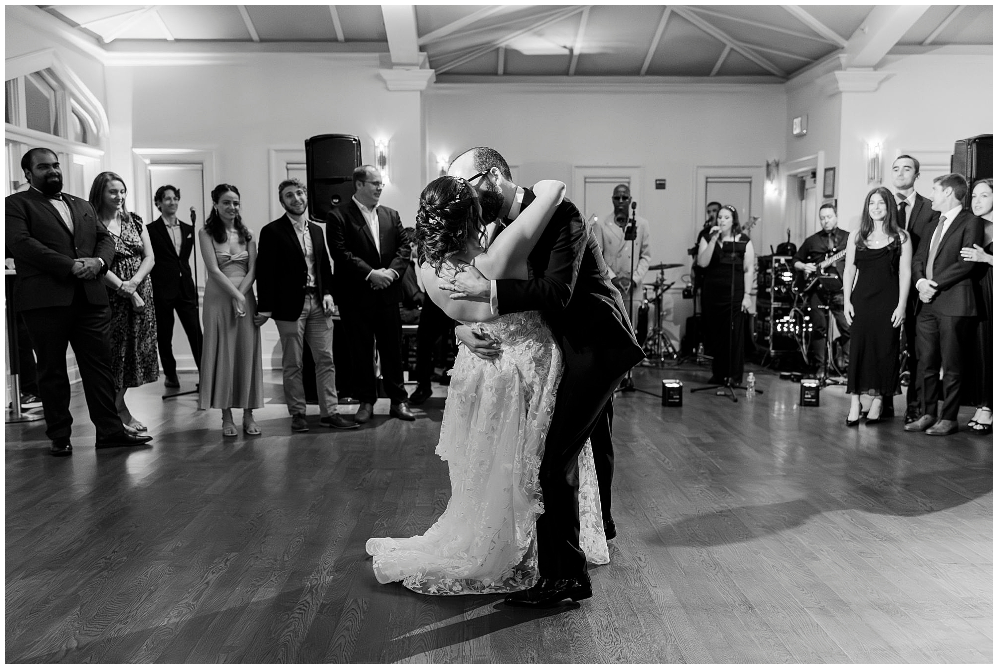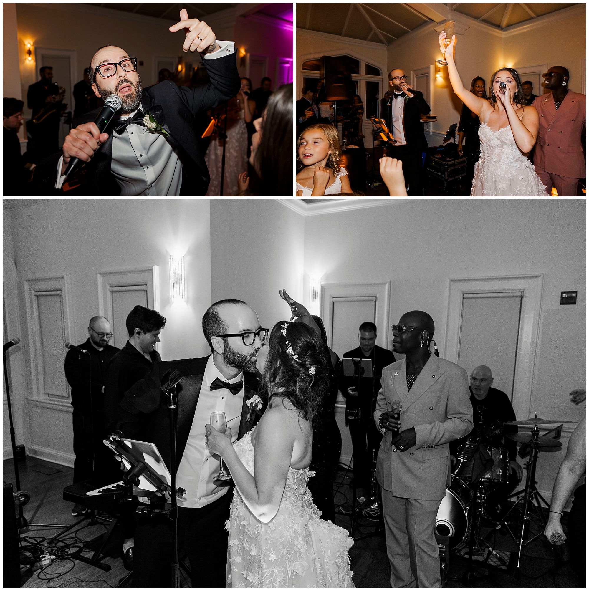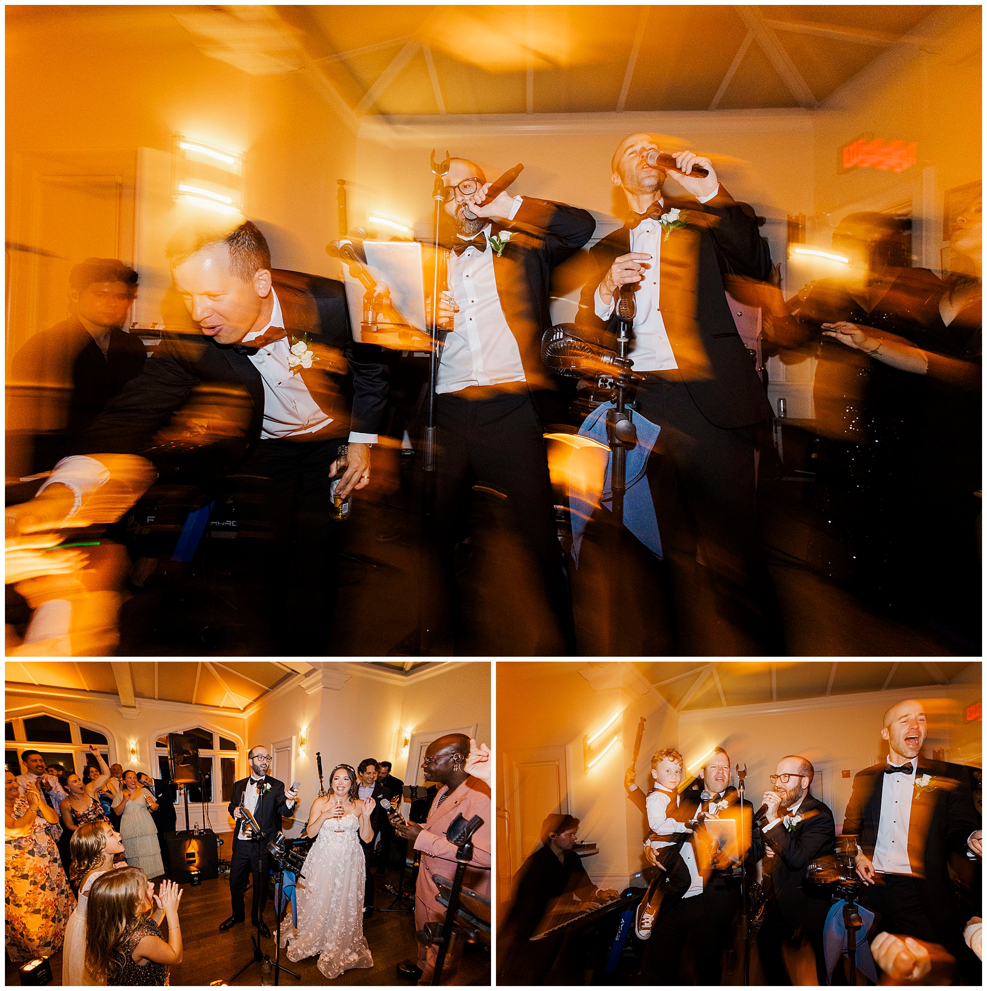 The reception kicks off with introductions and first dances. Jackie dances with her father, and Phil shares a sweet moment with his mother. The Atomic Funk Project performs an incredible live set. Guests fill the dance floor and sing along.