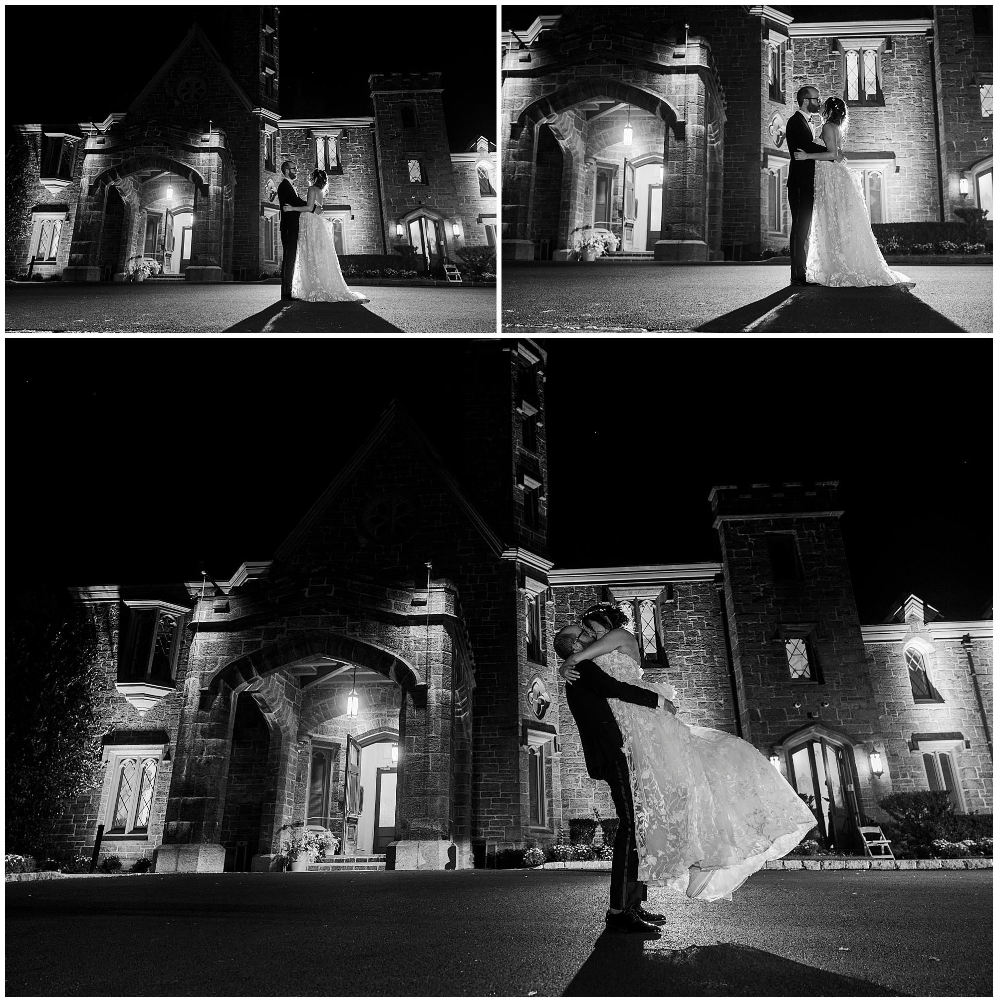 To close the evening, we take Jackie and Phil outside for nighttime photos. The castle glows softly under the lights. These portraits feel romantic and cinematic, a beautiful ending to the day. It is the perfect way to conclude their story.