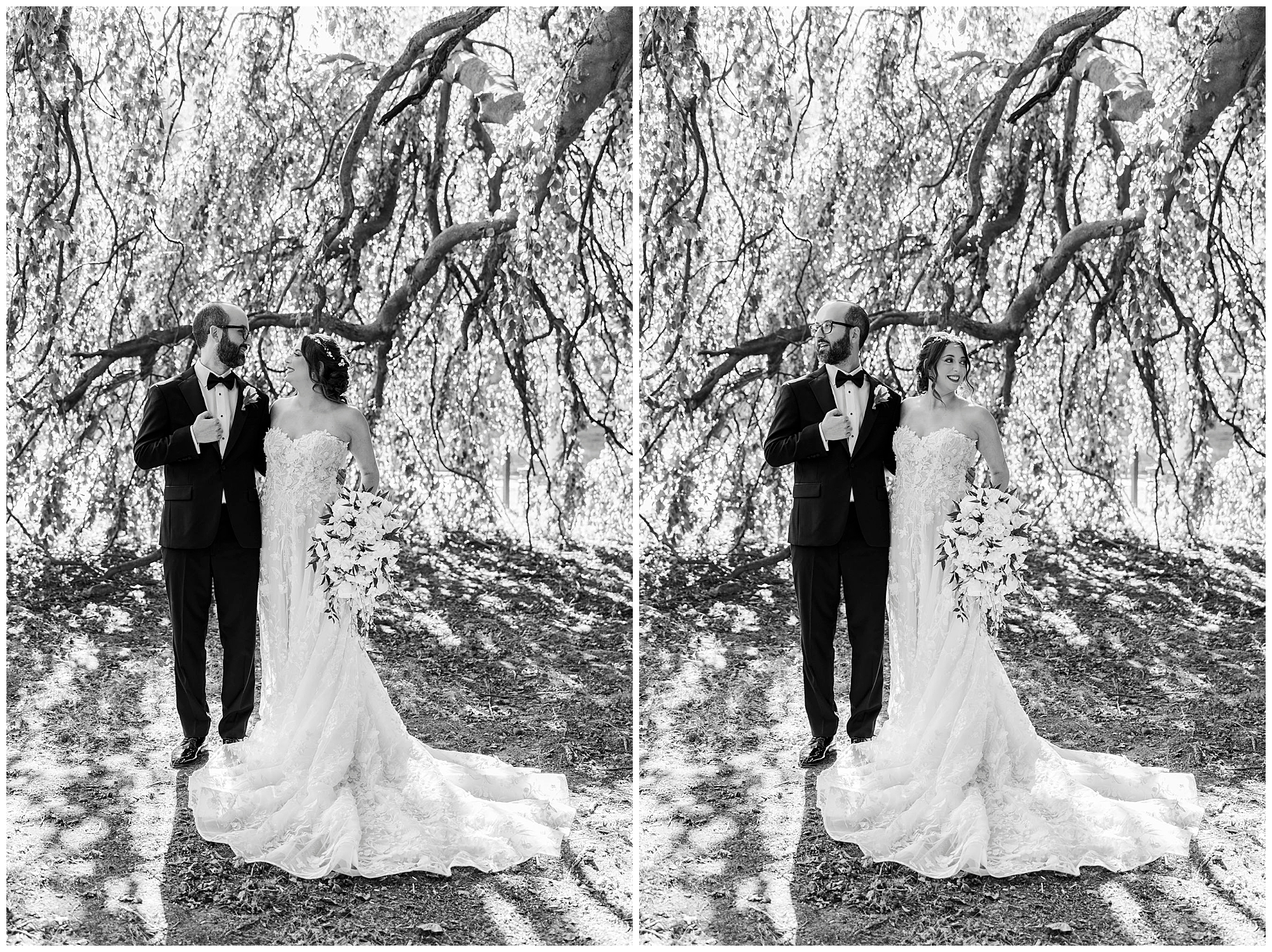 After their first look, we take romantic portraits beneath the willow tree. The filtered light and flowing branches create a dreamy atmosphere. We then use the castle façade as a backdrop for timeless shots. Each frame captures the elegance of this beautiful wedding at Whitby Castle.