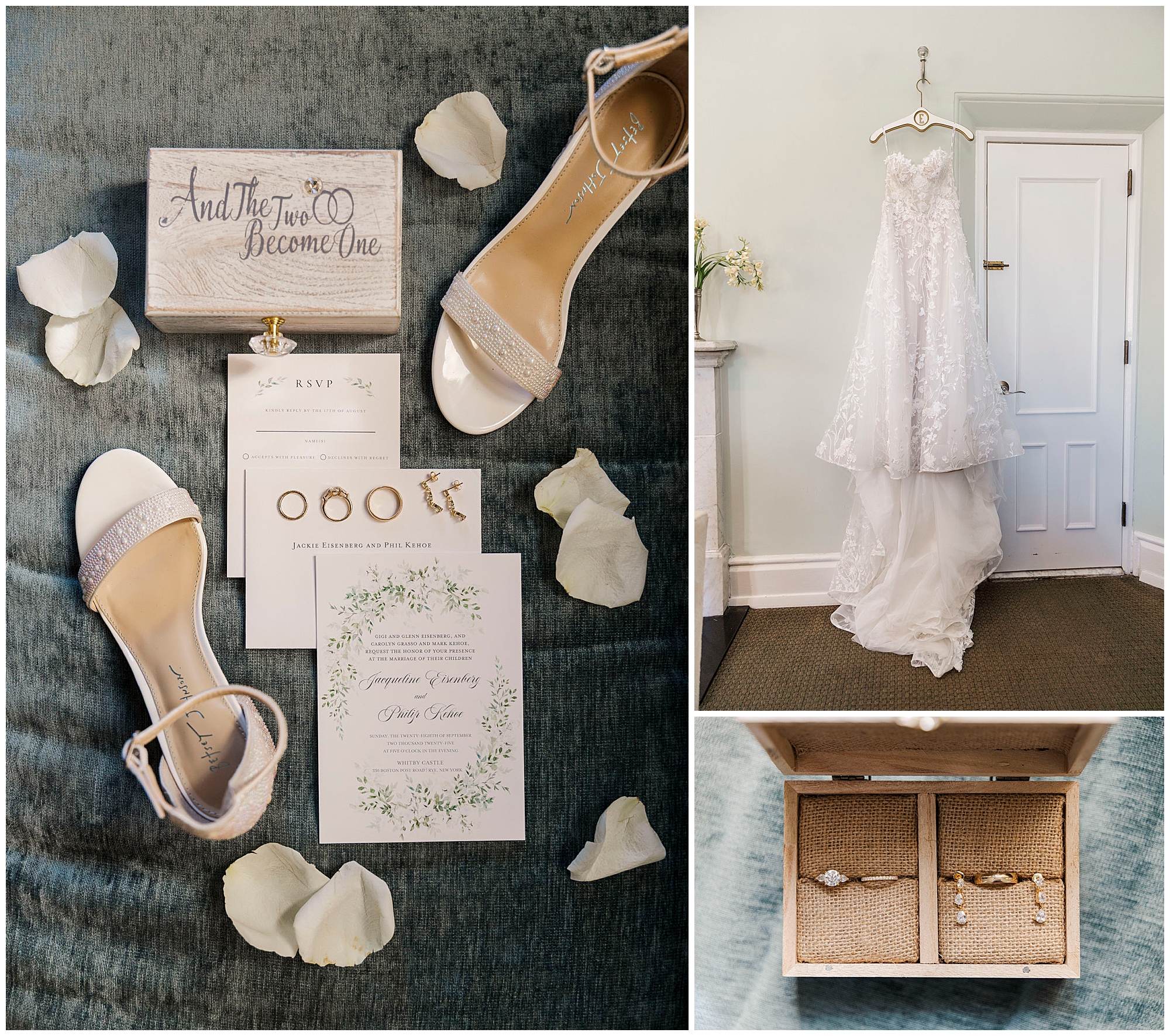 This beautiful day comes together with the help of an incredible vendor team. The ceremony and reception take place at Whitby Castle, which provides exceptional service and staff. Beauty services are provided by Aurelia Dileo. Jackie’s stunning gown is by Jae Hee Atelier, and Phil’s tuxedo is from Jos. A. Bank.
