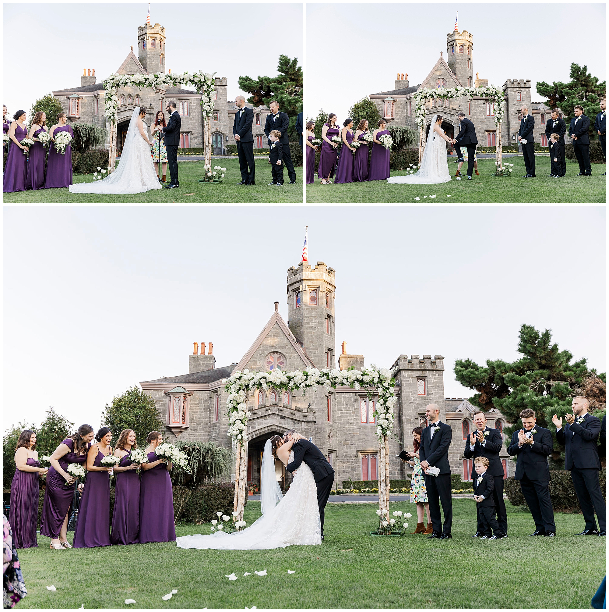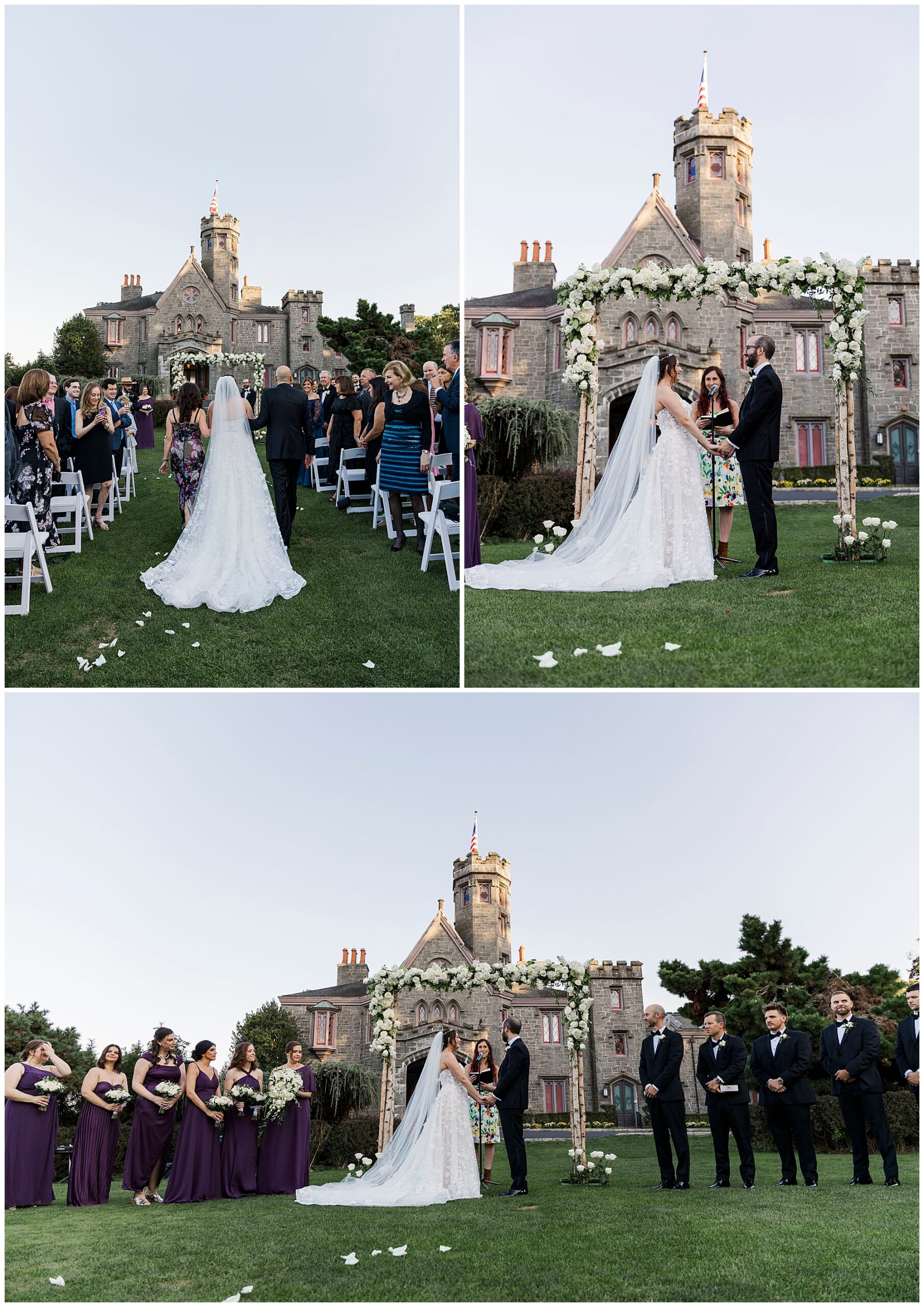 The lawn ceremony offers panoramic views of the Long Island Sound. Guests enjoy the scenery while celebrating the couple’s love. As photographers, we love how the space combines openness with intimacy. Every wedding at Whitby Castle feels unique against this natural backdrop.