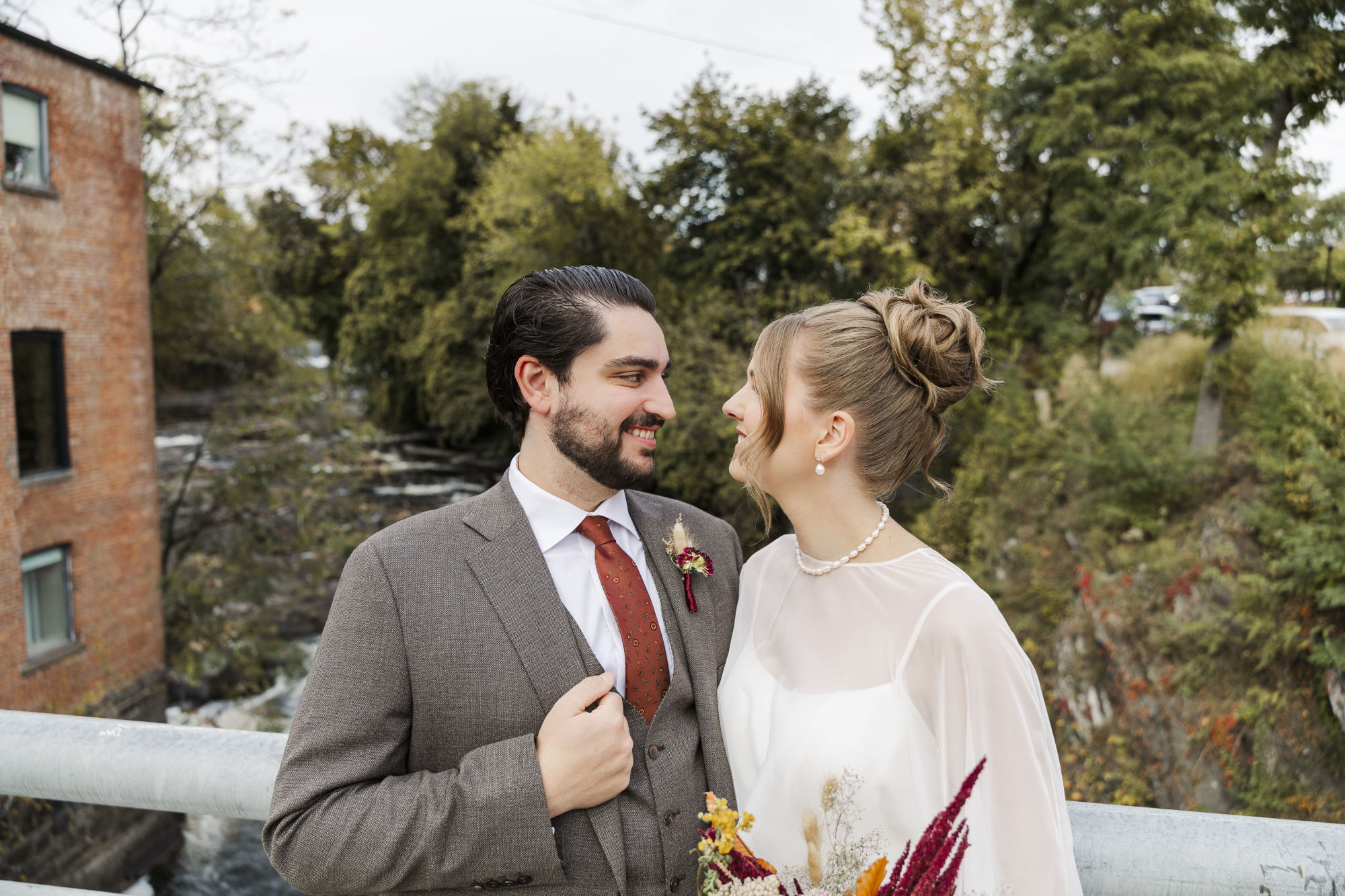 We work with you to understand your vision and the vibe you’re going for. Some couples want minimal intervention, just us blending into the background and documenting. Others appreciate more direction during portraits. We’re comfortable with both approaches and everything in between, whether you’re saying your vows at Whitby Castle or dancing the night away at Harvest on Hudson.