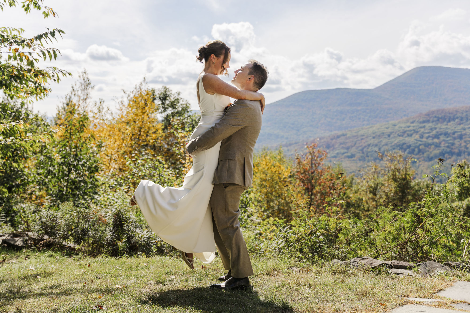 Each season in the Hudson Valley brings something different to your wedding photos and video. Fall foliage weddings are iconic here, with the mountains turning brilliant shades of orange and red as the perfect backdrop. Winter weddings offer cozy indoor receptions and the possibility of snow covered portraits. Spring brings blooming gardens and soft light, while summer means golden hour portraits that last forever and outdoor celebrations under warm evening skies. We’ve photographed weddings in every season and can help you think through how the time of year will affect your timeline and portrait locations.