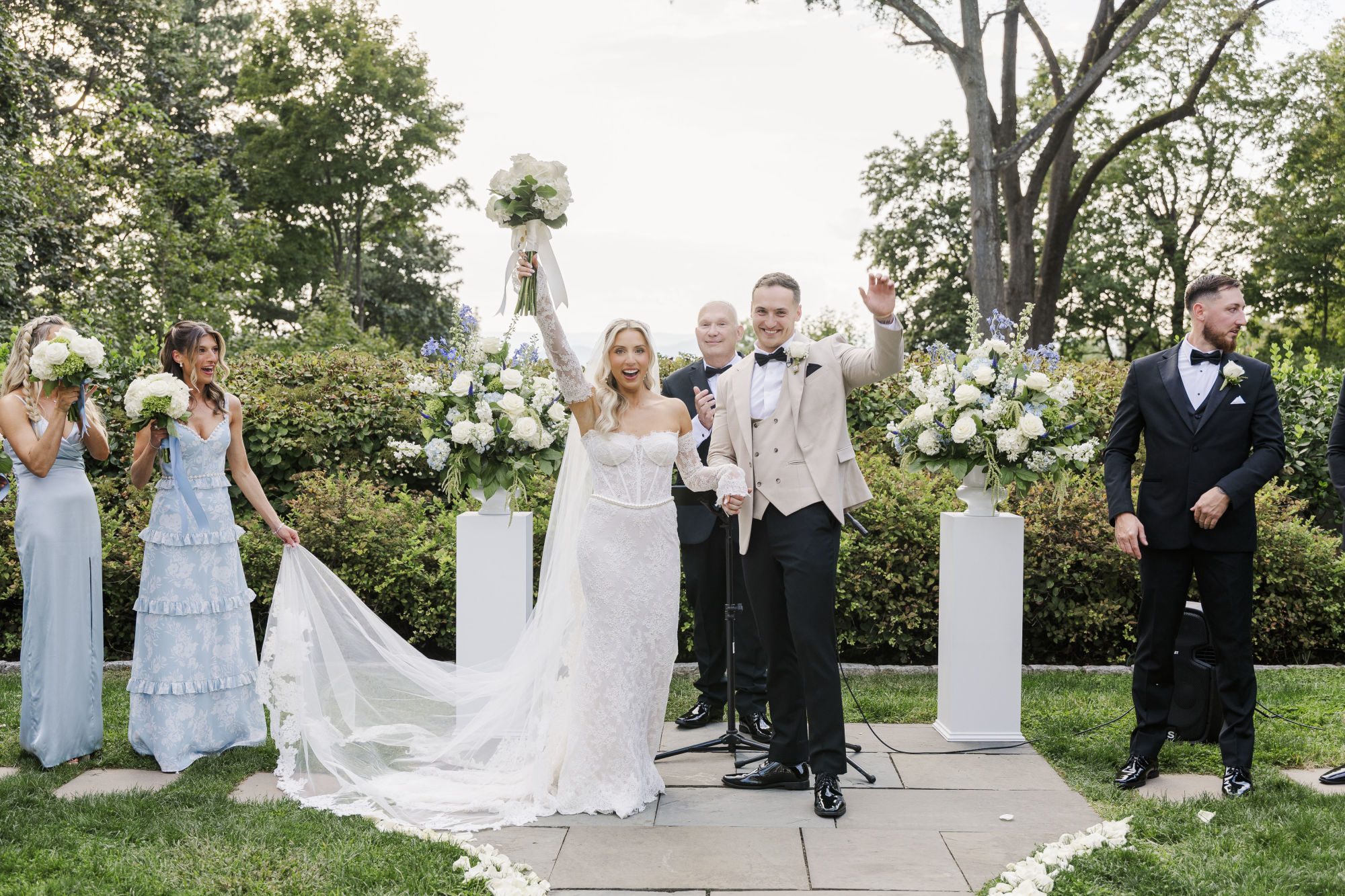 Intimate weddings, typically under 50 guests, allow for a different kind of coverage. We can spend more time on portraits, capture more one on one moments with guests, and move through the day at a relaxed pace. Large celebrations bring their own energy, with packed dance floors, elaborate details, and big family dynamics to document. We’ve photographed both at venues like The Briarcliff Manor and Tarrytown House Estate, and we love the unique challenges each size brings.